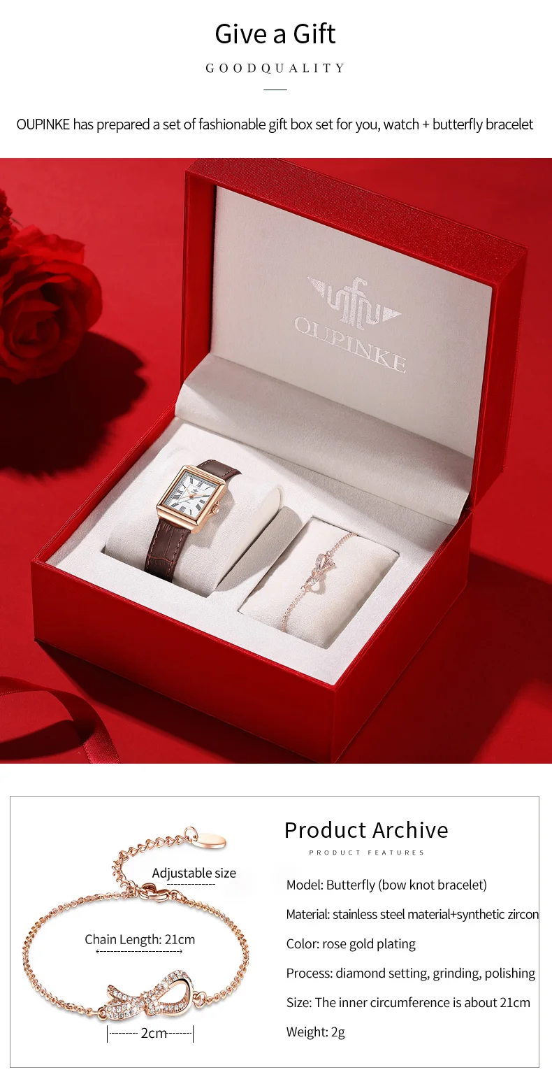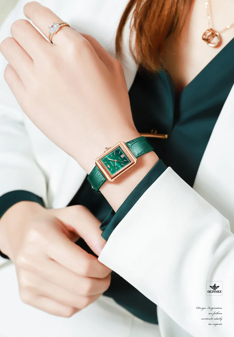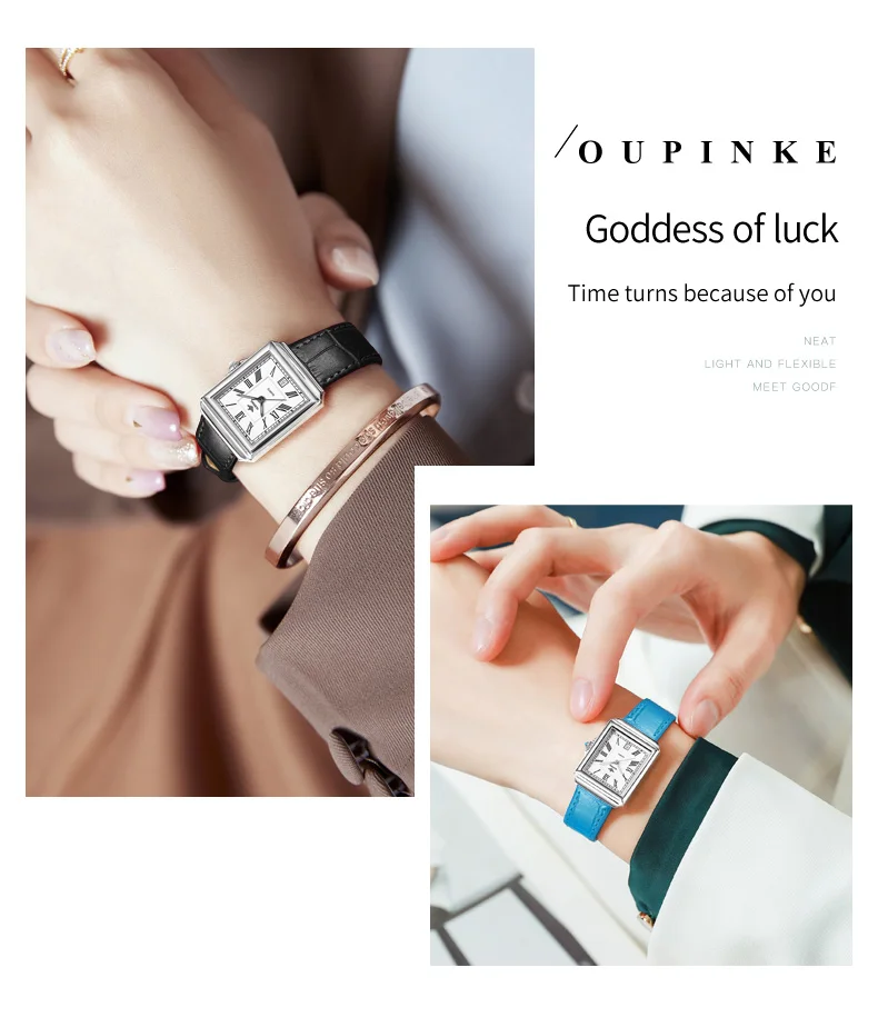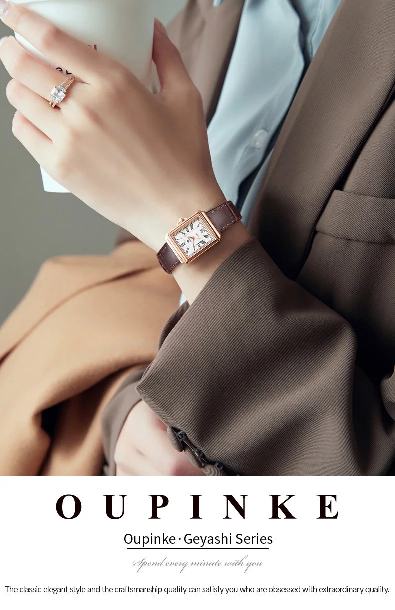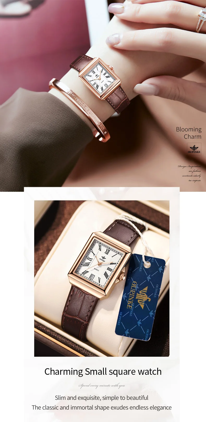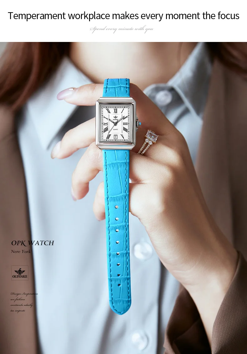 OUPINKE 3182 Simple Womens Watches Elegant Rectangular Dial Quartz Watch Leather strap Date Waterproof Original Lady Wristwatch