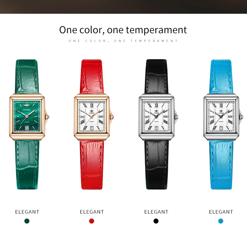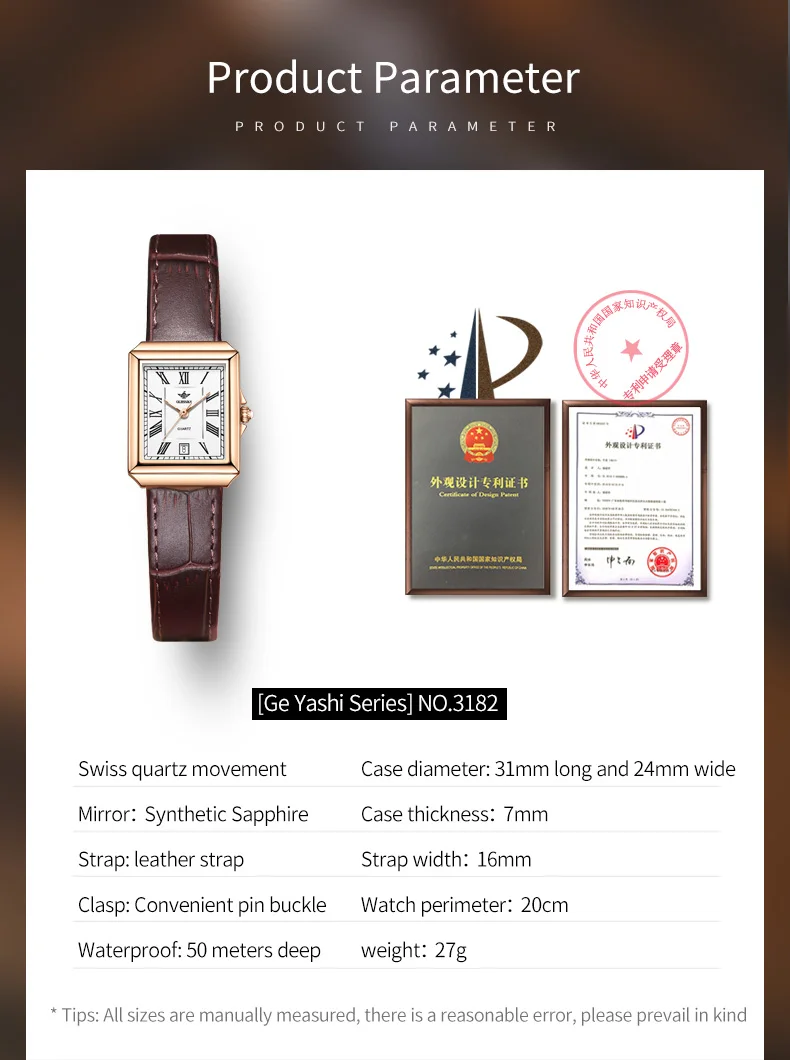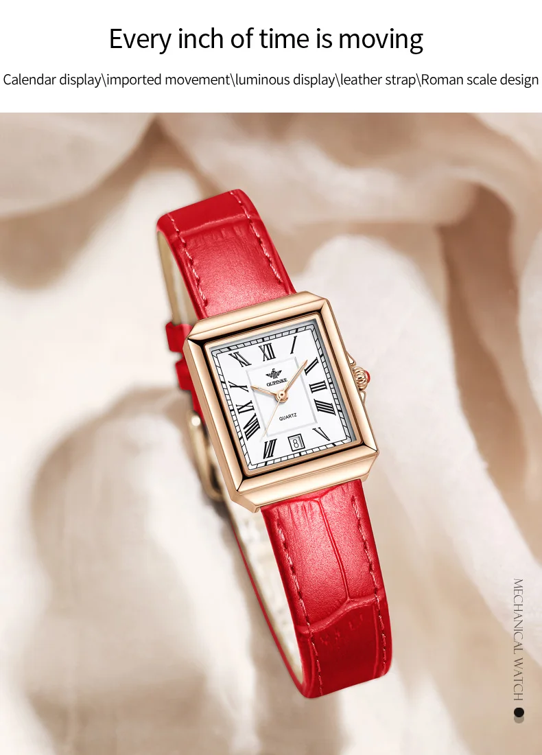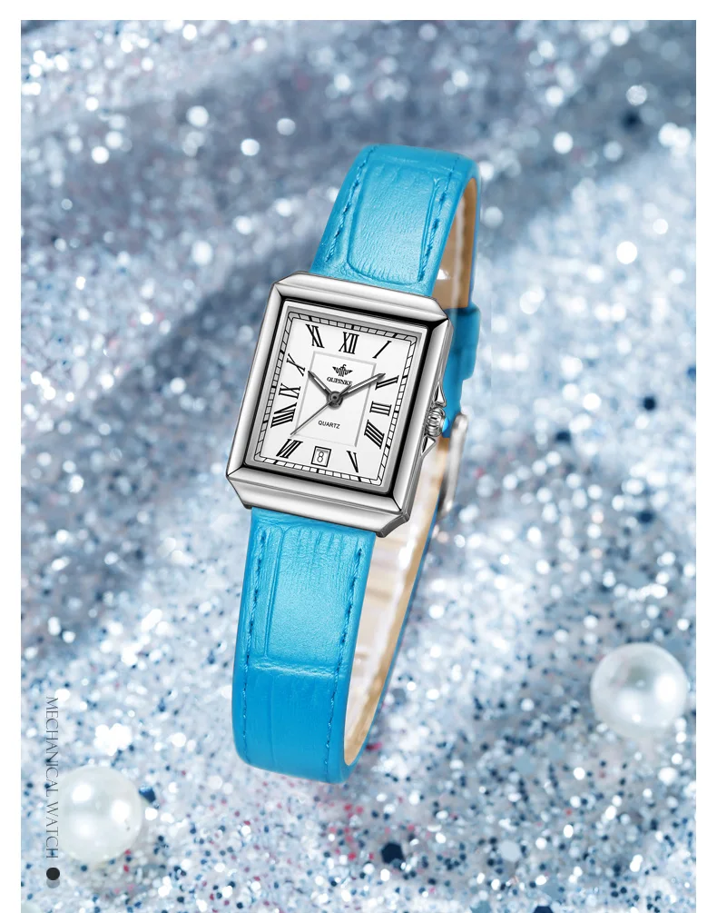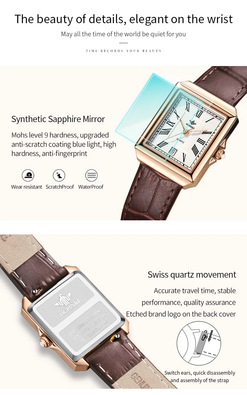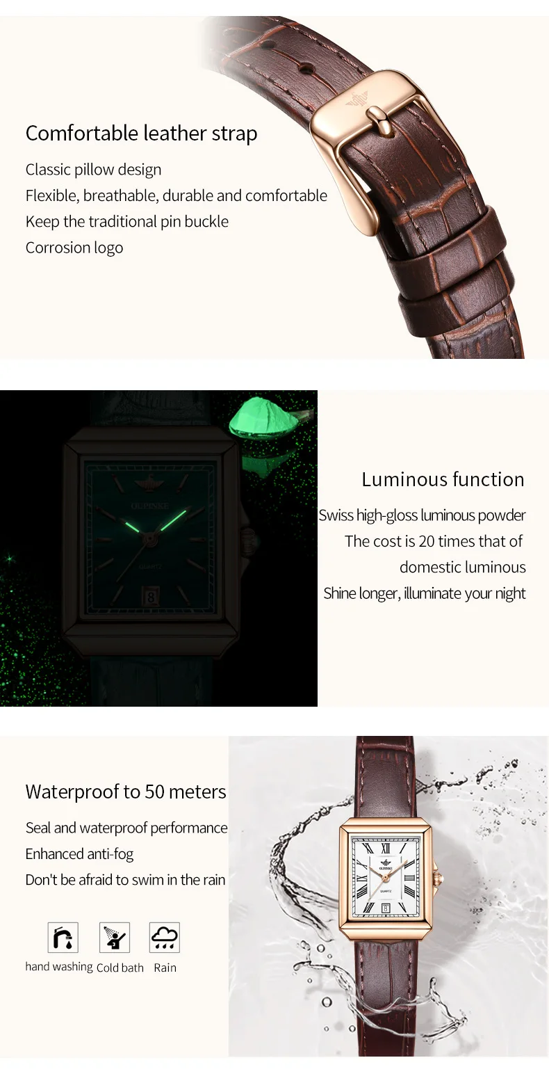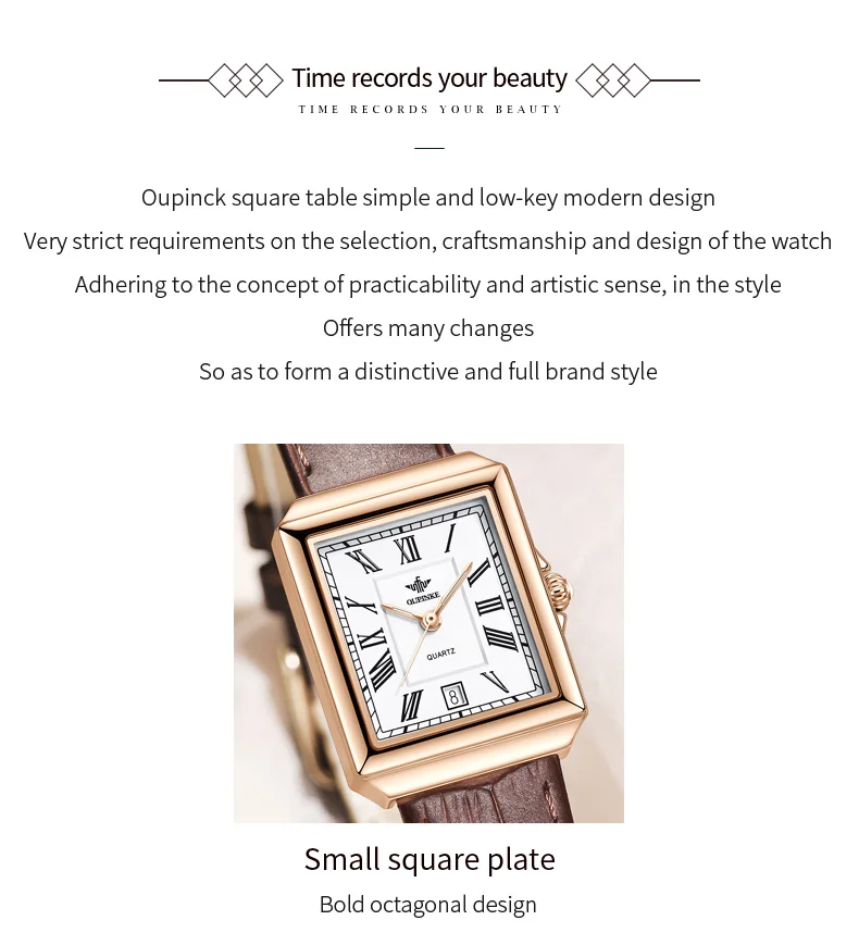 OUPINKE 3182 Simple Womens Watches Elegant Rectangular Dial Quartz Watch Leather strap Date Waterproof Original Lady Wristwatch