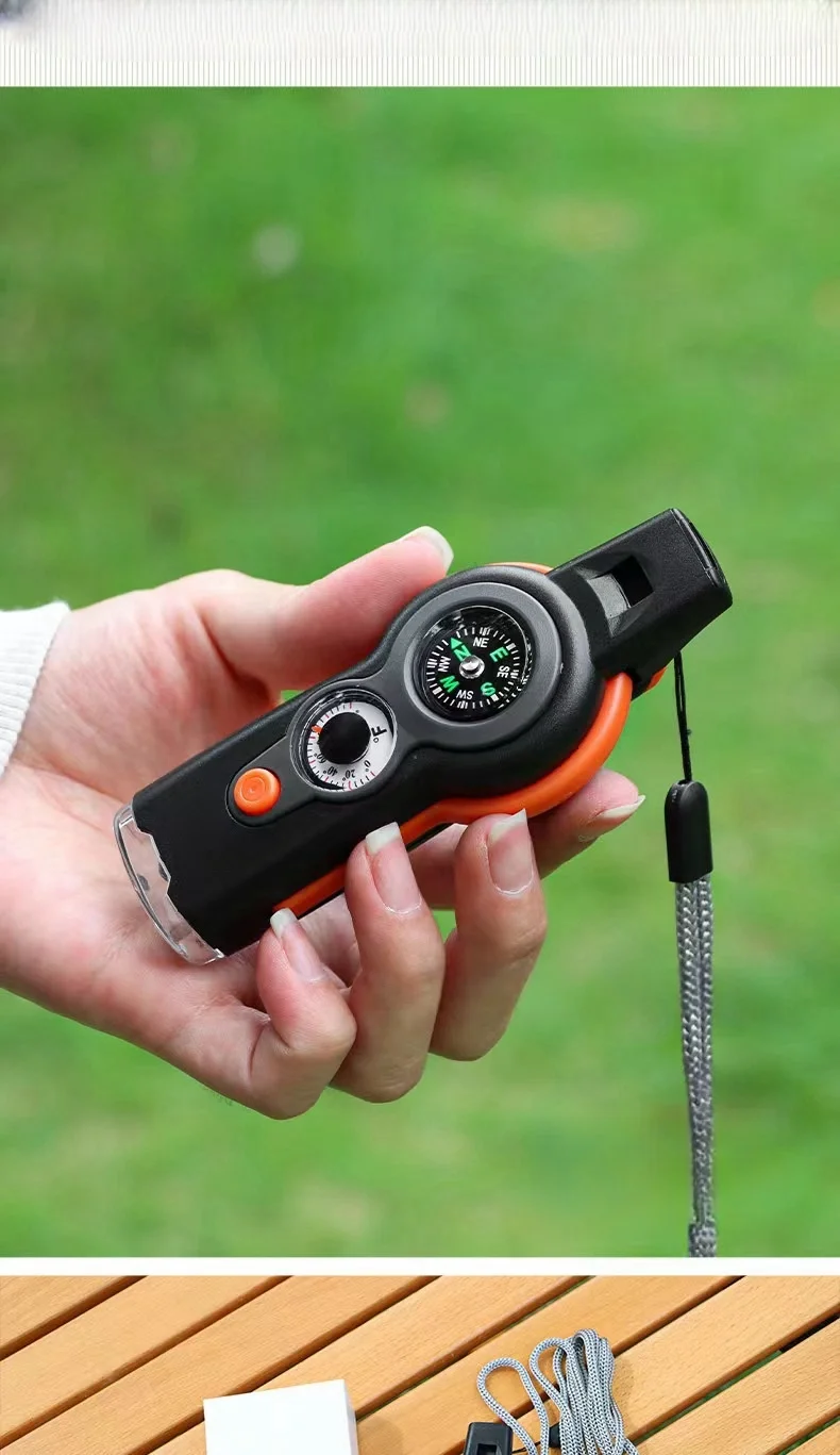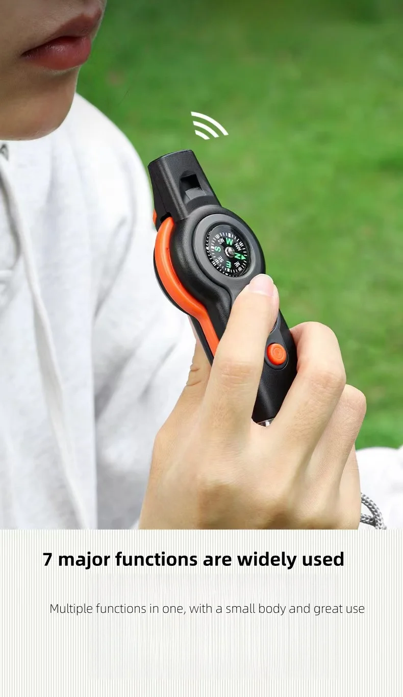 Outdoor Camping 7-In-1 Multi-Function Whistle Survival Whistle Safety Whistle For Hiking Travel Accessories