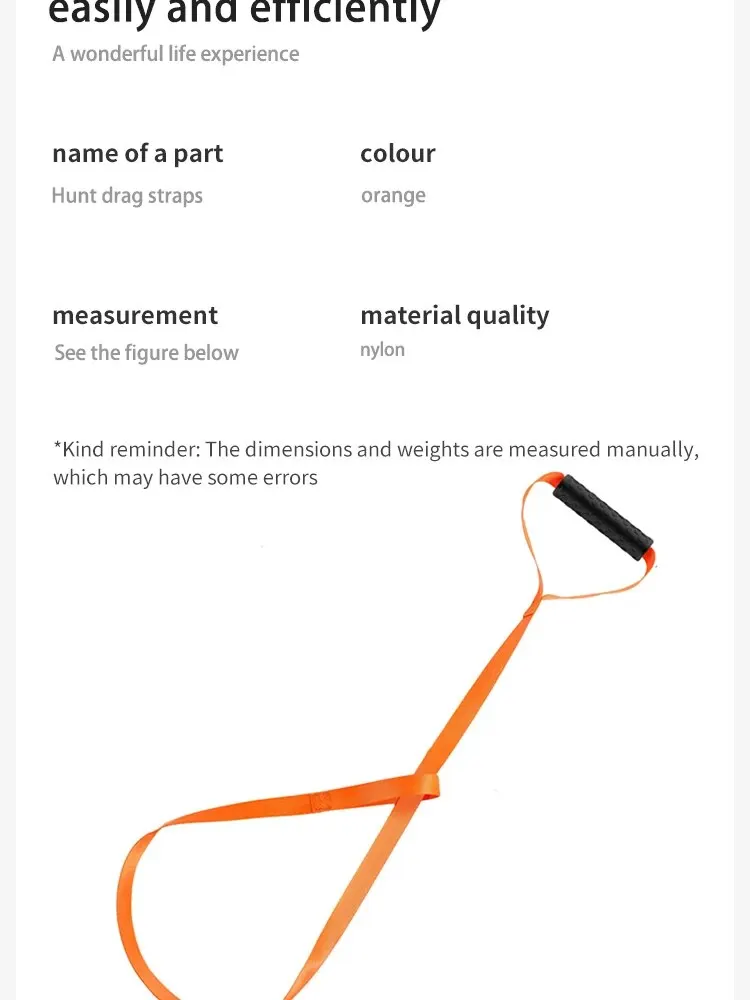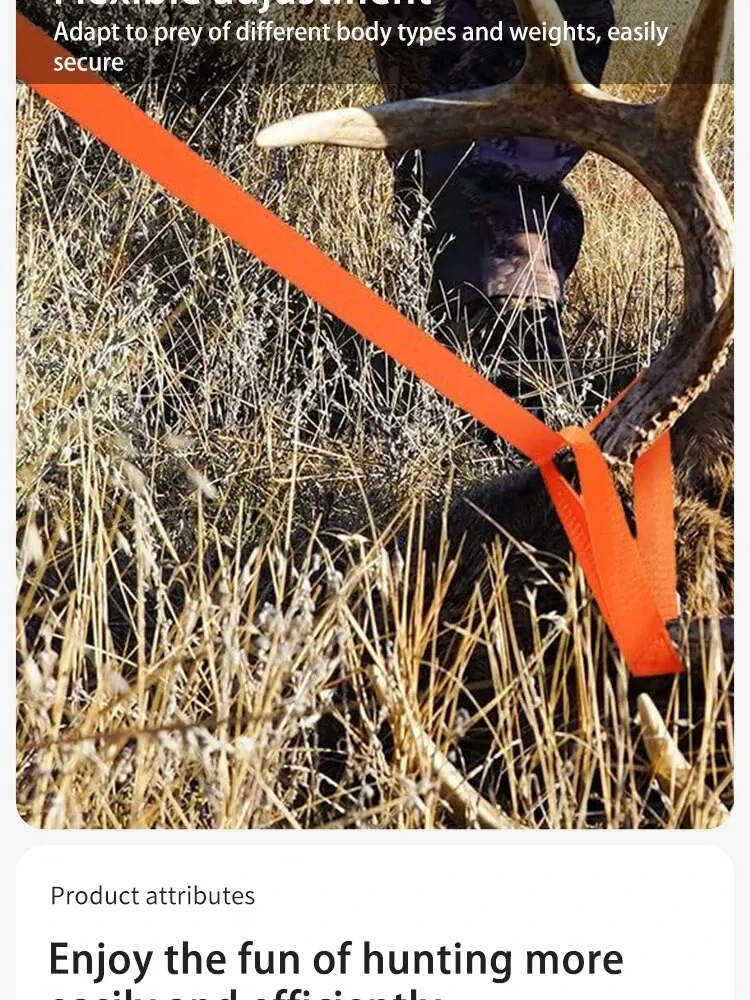 Adjustable length: In order to adapt to different sizes of prey and hauling needs, straps are usually designed with adjustable length. Through buckles, hooks or other connecting devices, the strap can be adjusted as needed to ensure that the prey is firmly fixed.