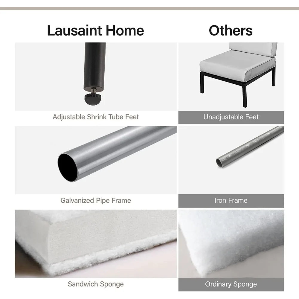 - 【Super Comfortable Material】This outdoor patio furniture is made of Olefin fabric that is water-resistant and has good anti-aging performance, improving the service life of the sofa. The high-density sandwich sponge pad has good elasticity. The seat cushion is widened and thickened and can reach 5", bringing you unparalleled comfort.