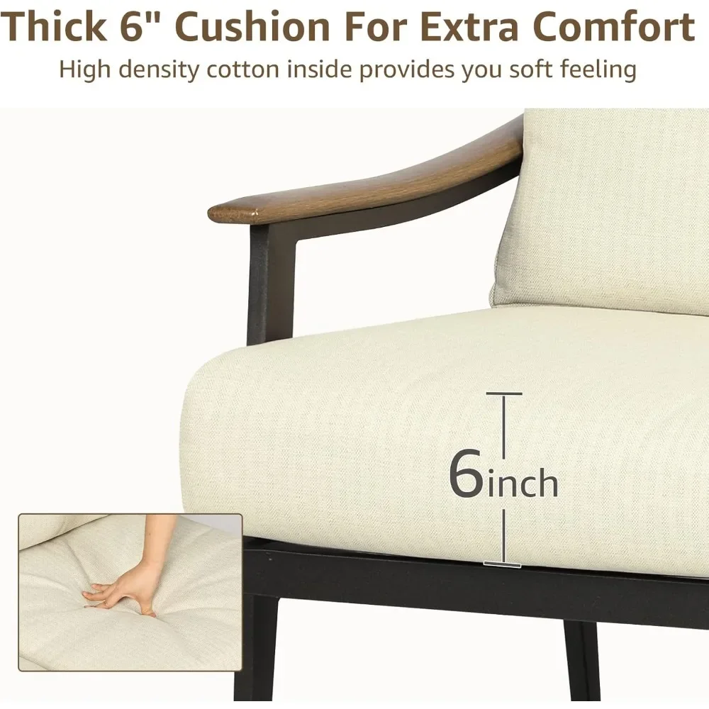 【Premium Olefin Fabric & 6” Thick Cushions】 single patio sofa is featured upgrade fabric-Olefin fabirc, it is comfortable, breathable and fade resistant, better than normal fabirc. The seat cushions thickened to 6 inches will meet your comfort needs. It will be a good choice for you to relax with this outdoor chair on the balcony.