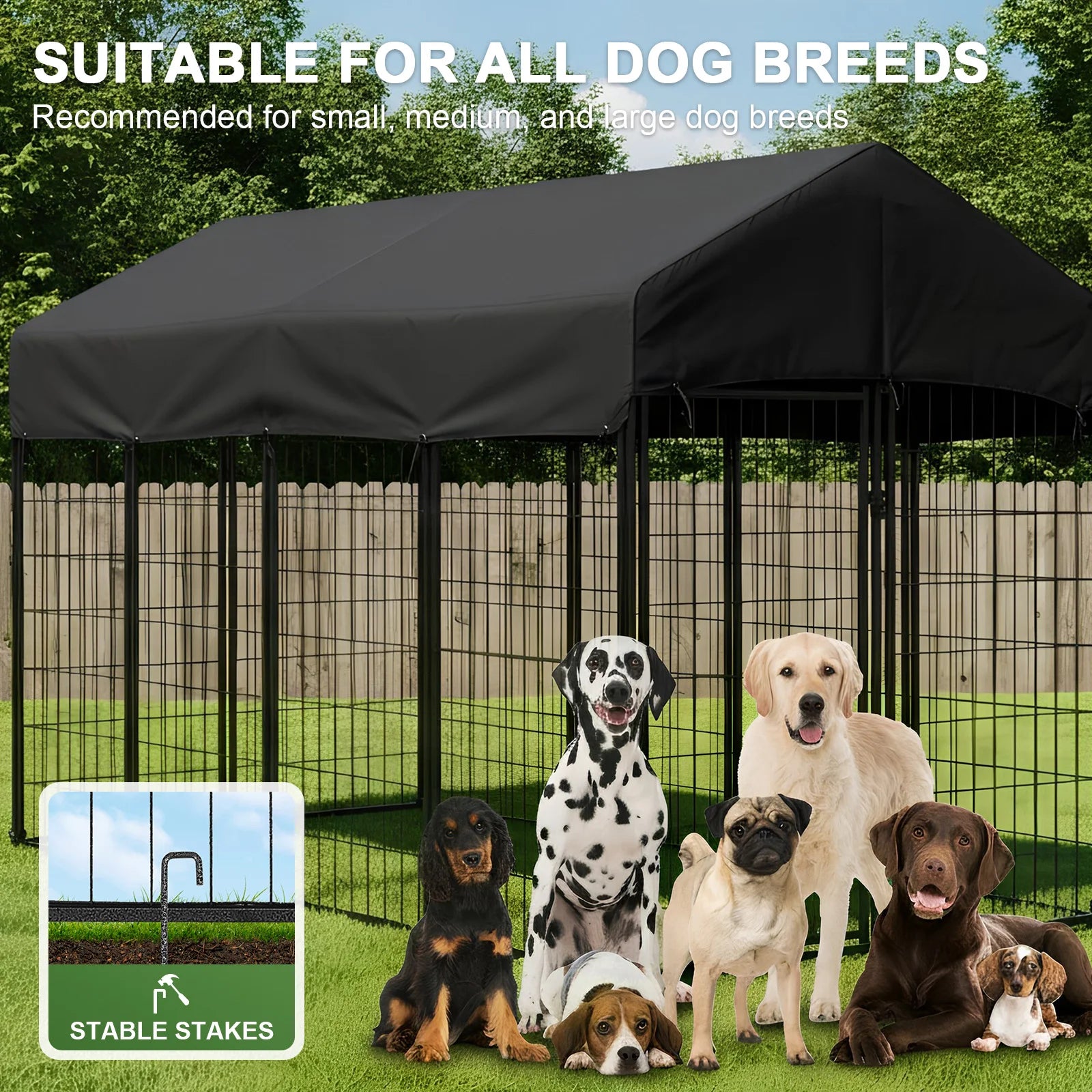 Outdoor Secure Wire Crate Kennel with Security Door Heavy Duty Welded Wire Steel Dog Playpen Fence Waterproof Tarpaulin for Medium To Small Dog