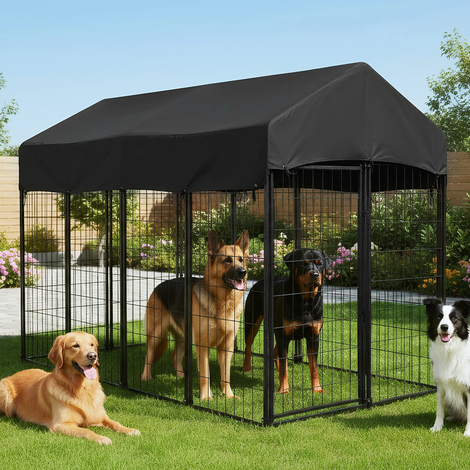 Outdoor Secure Wire House Pet Crate Kennel Anti-Rust Heavy Duty Welded Wire Steel Metal Dog Waterproof Tarpaulin Playpen Fence