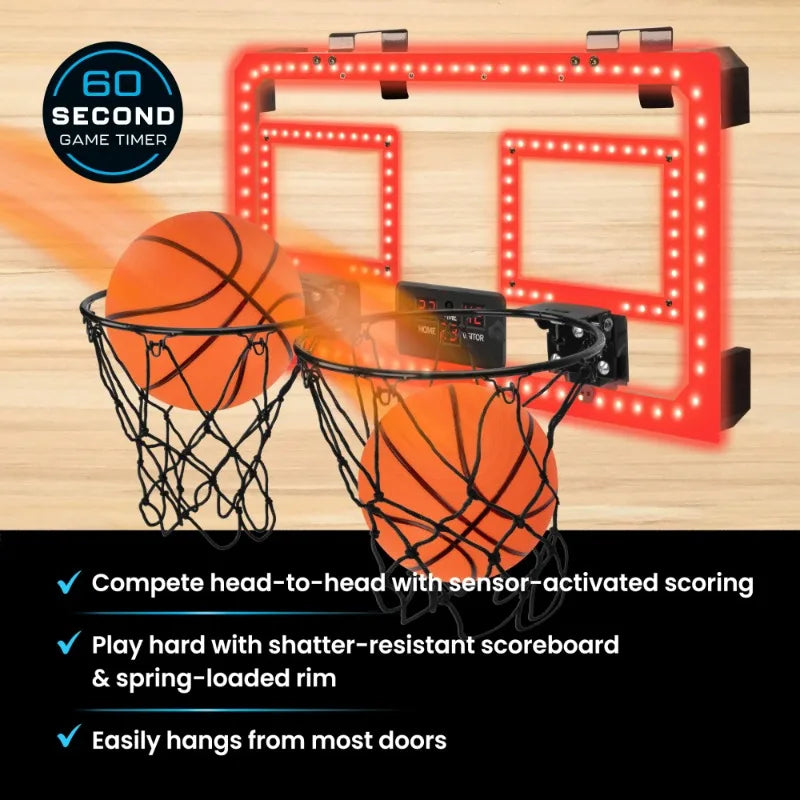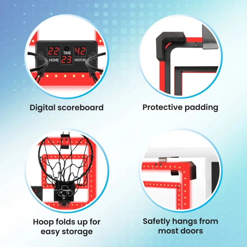 - LED FUNCTIONALITY: The backboard lights up and flashes when a basket is scored!