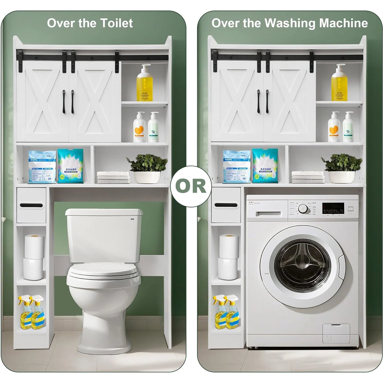 Over The Toilet Storage Cabinet Iron Sliding Door Toilet Storage Rack Home Space Save Toilet Rack for Restroom Bathroom Laundry
