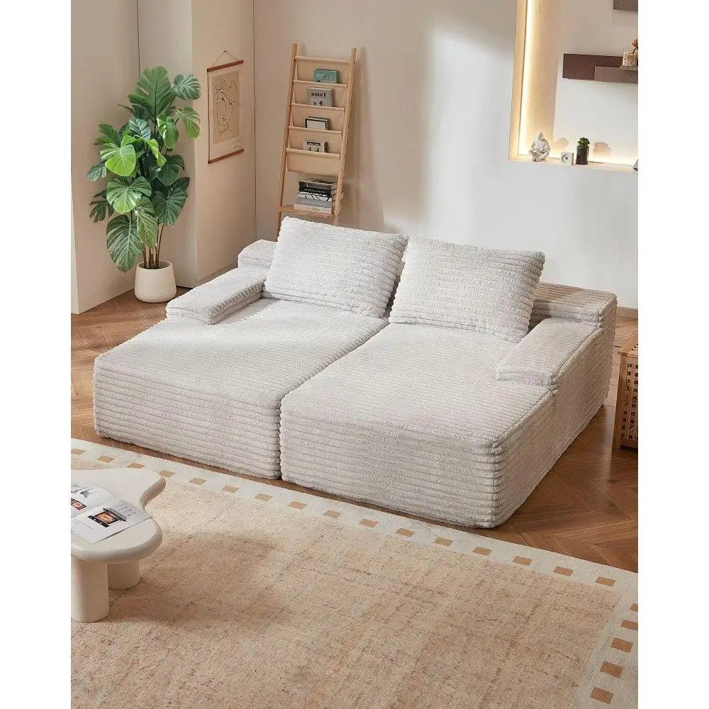 - Oversized Double Chaise Lounge 82.7 in Corduroy Sectional Loveseat Sofa Beige