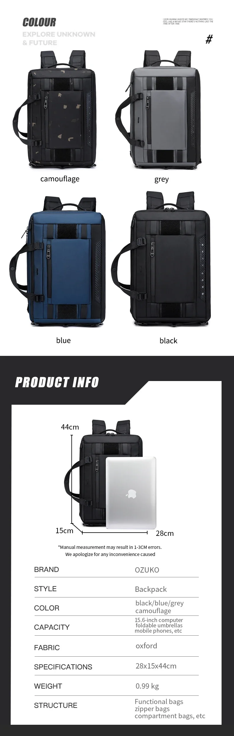 OZUKO Handbags Luxury Luggage Men Business Laptop Backpacks Multifunction Waterproof Travel Duffel Crossbody Bag Large Capacity