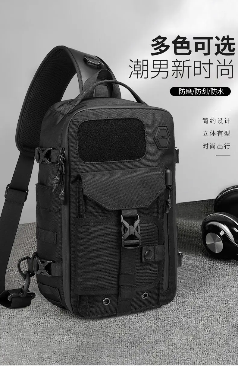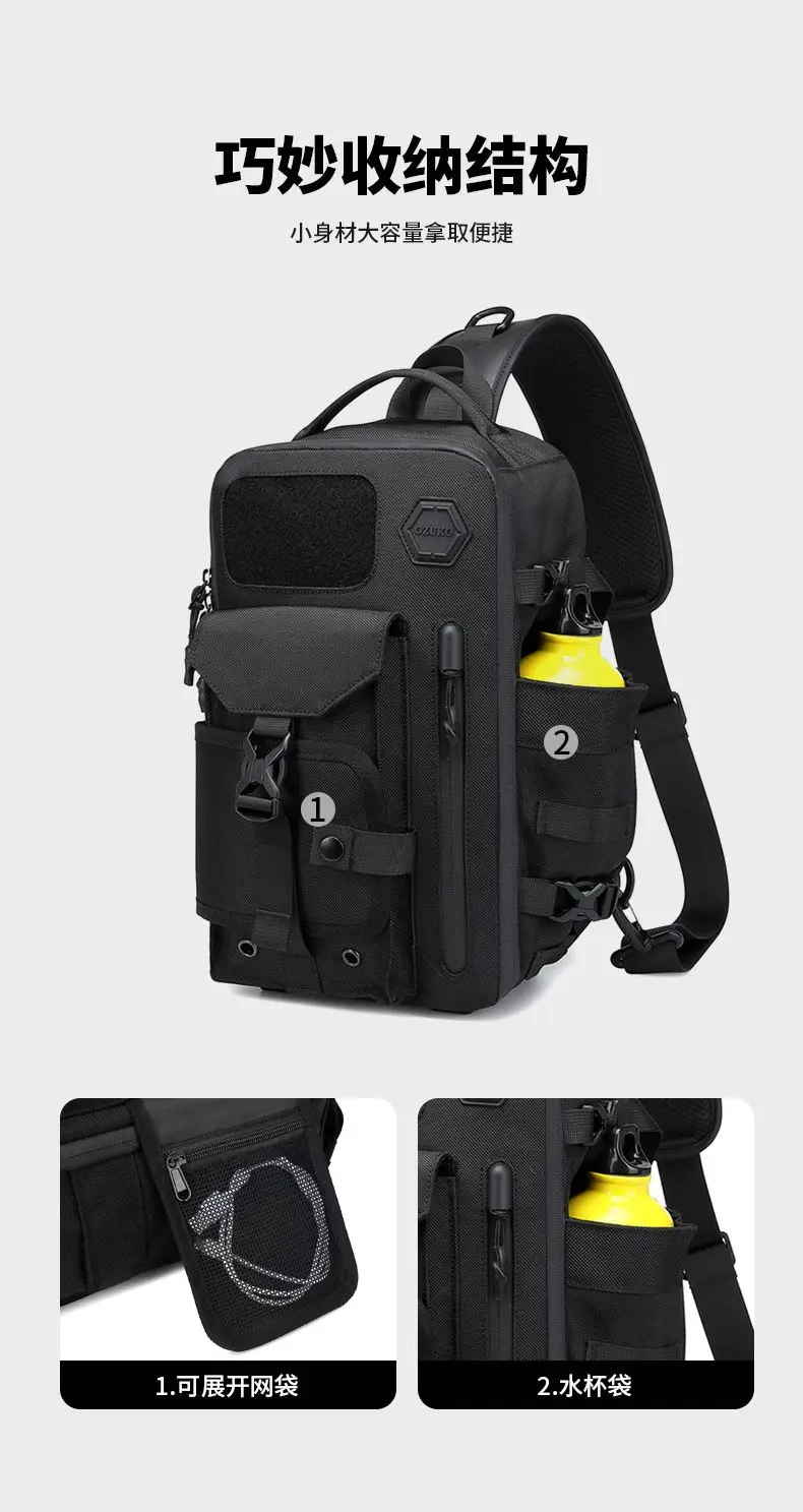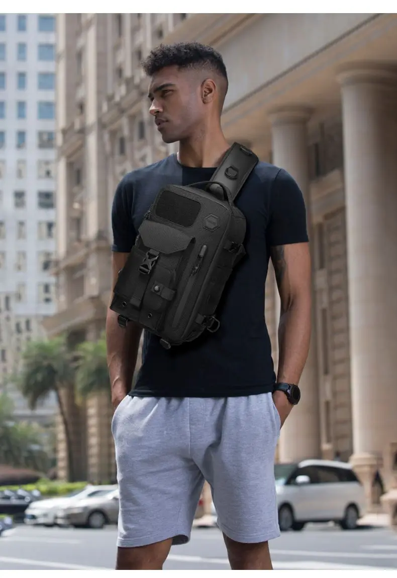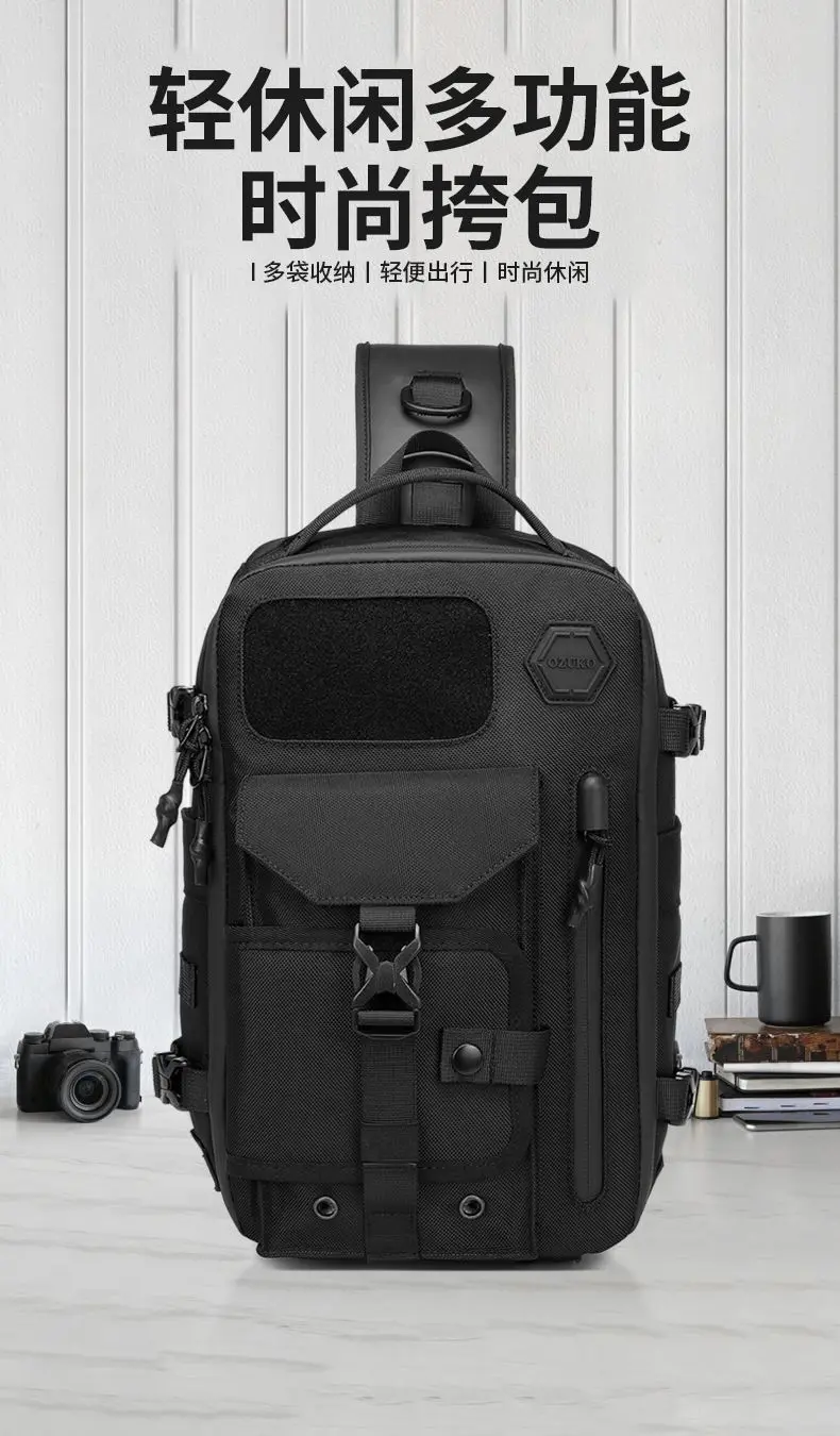OZUKO Shoulder Bag for Men Chest Bag Waterproof Tactical Waist Messenger Bag Zipper Fashion Outdoor Sports Large-capacity Black