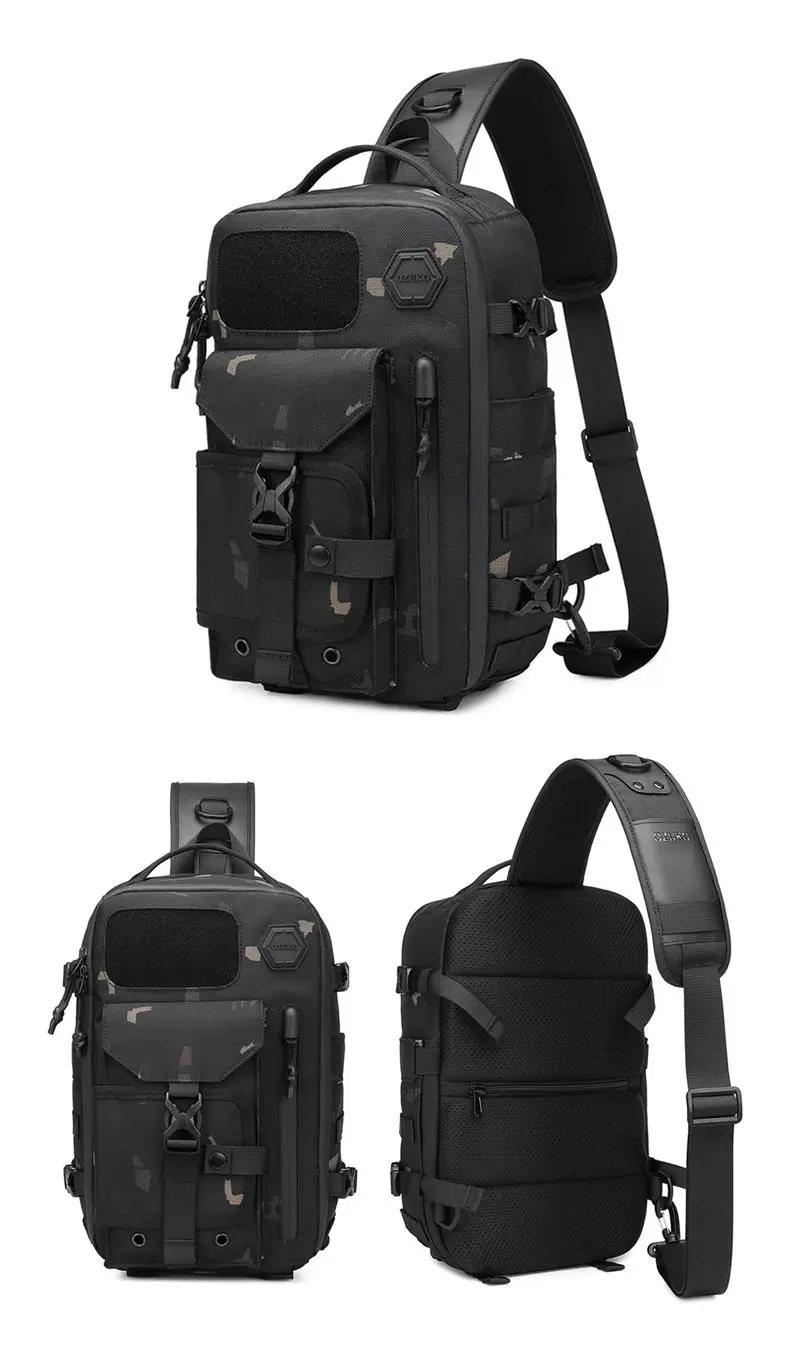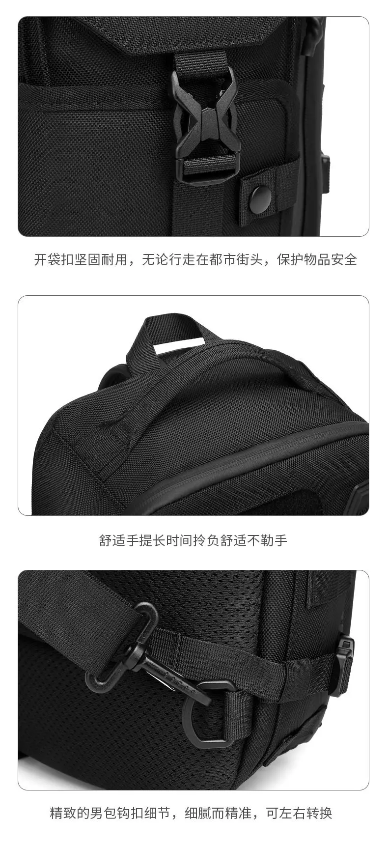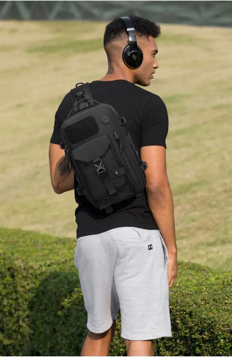 OZUKO Shoulder Bag for Men Chest Bag Waterproof Tactical Waist Messenger Bag Zipper Fashion Outdoor Sports Large-capacity Black