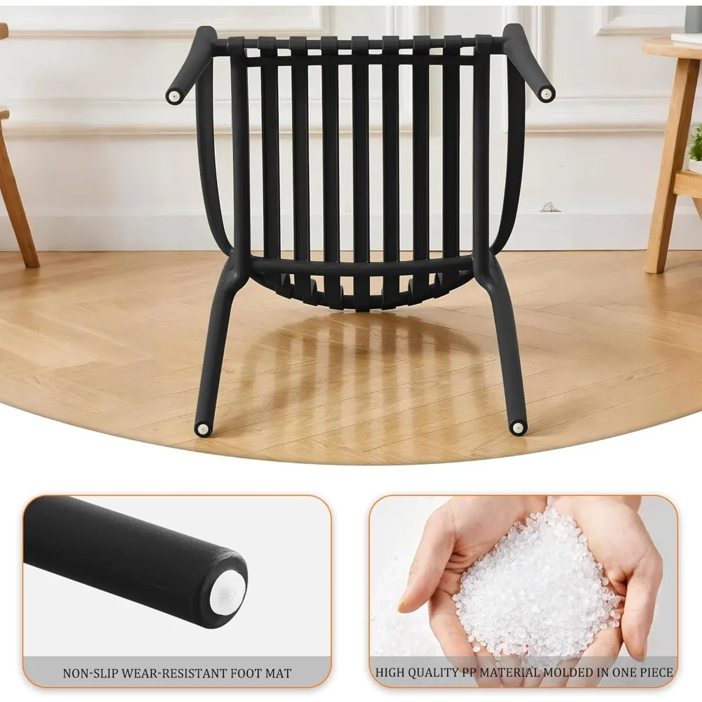 - Stackable Design: whether it's a home, office, or large event venue, this design is easy to store and transport. After stacking, the chairs are tightly fitted together, stable and not easy to tilt, both beautiful and practical.Its Design can effectively save space.