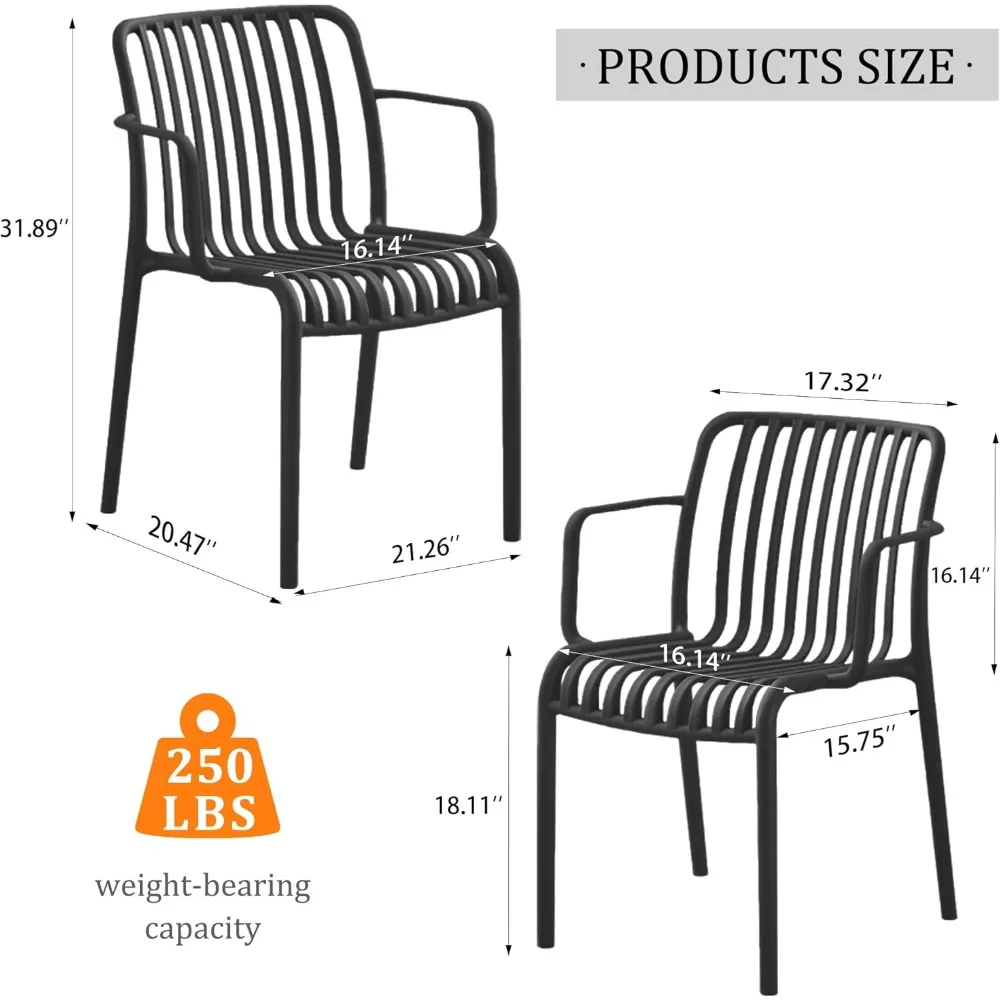 Patio Dining Chairs Set of 4,Outdoor Stackable Chairs with Curved Back for Indoor Waterproof Restaurant Cafes(Not Included Table
