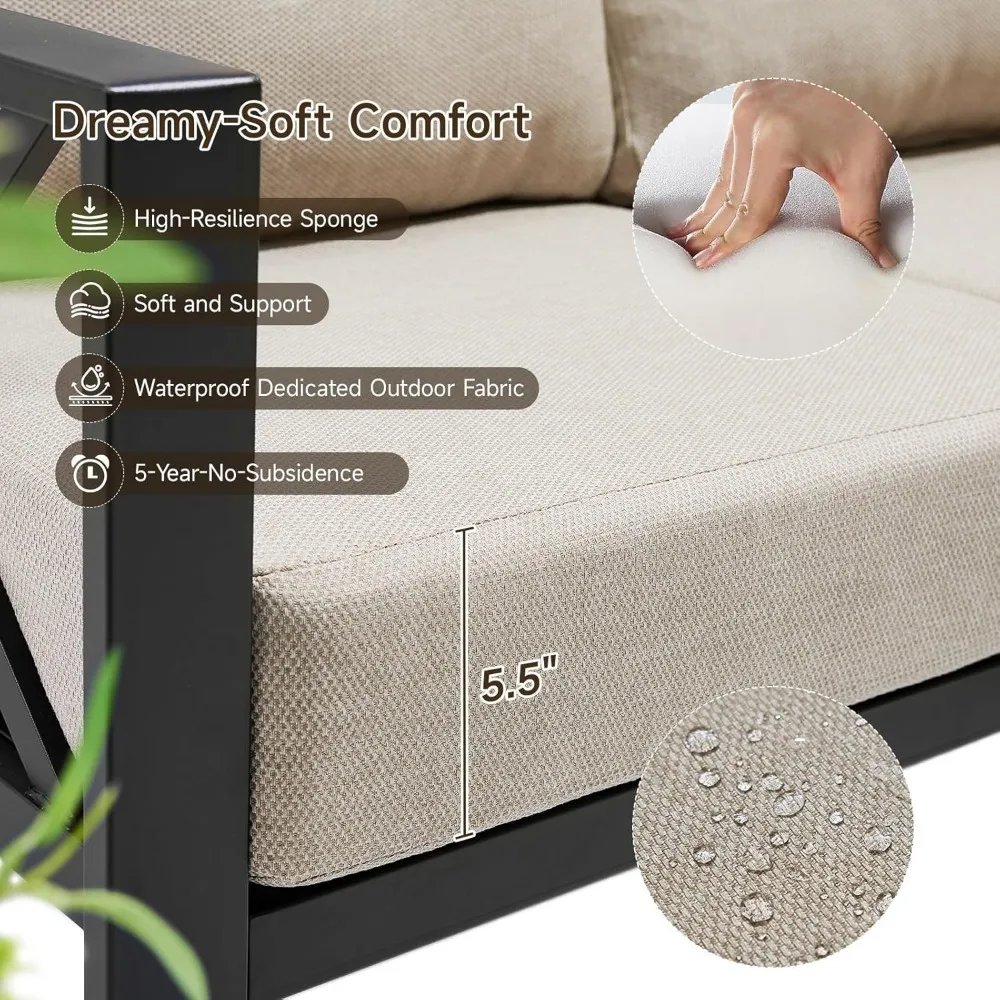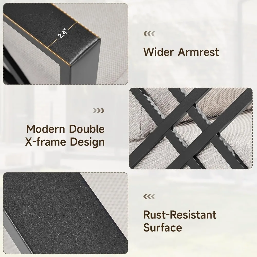 - 【All-Metal Frame】Are you tired of those flimsy outdoor couch that can't withstand a bit of weather? Meet your all-metal BFF! Metal Patio Furniture Set crafted from sturdy steel and adopted electrophoresis+plastic spraying double surface treatment, like a superhero shield, this set laughs at rain, snow, and outdoor severe weather. folks! No more worrying about rust, bending or flaking