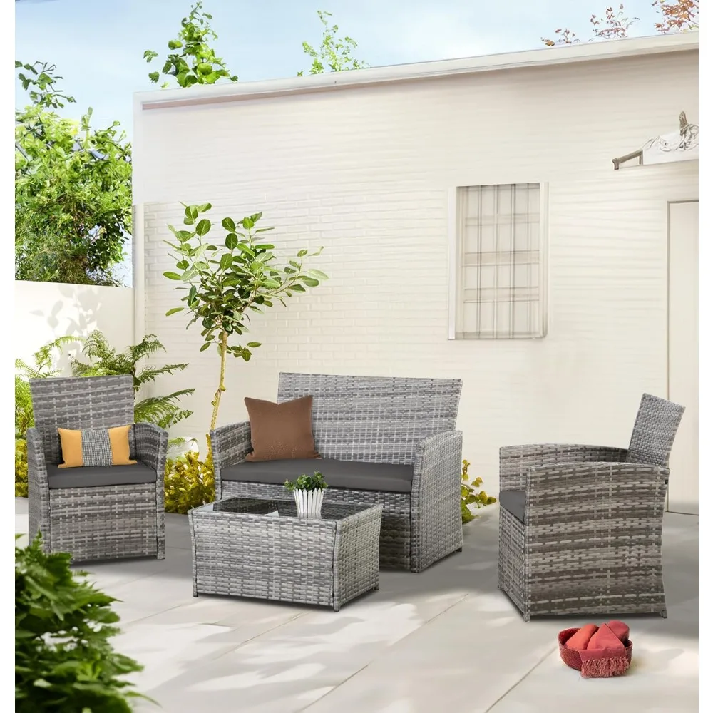 Patio Outdoor Furniture 4 Pieces Sectional Sofa Set Balcony Furniture Wicker Rattan Chairs with Table and Loveseat for Garden