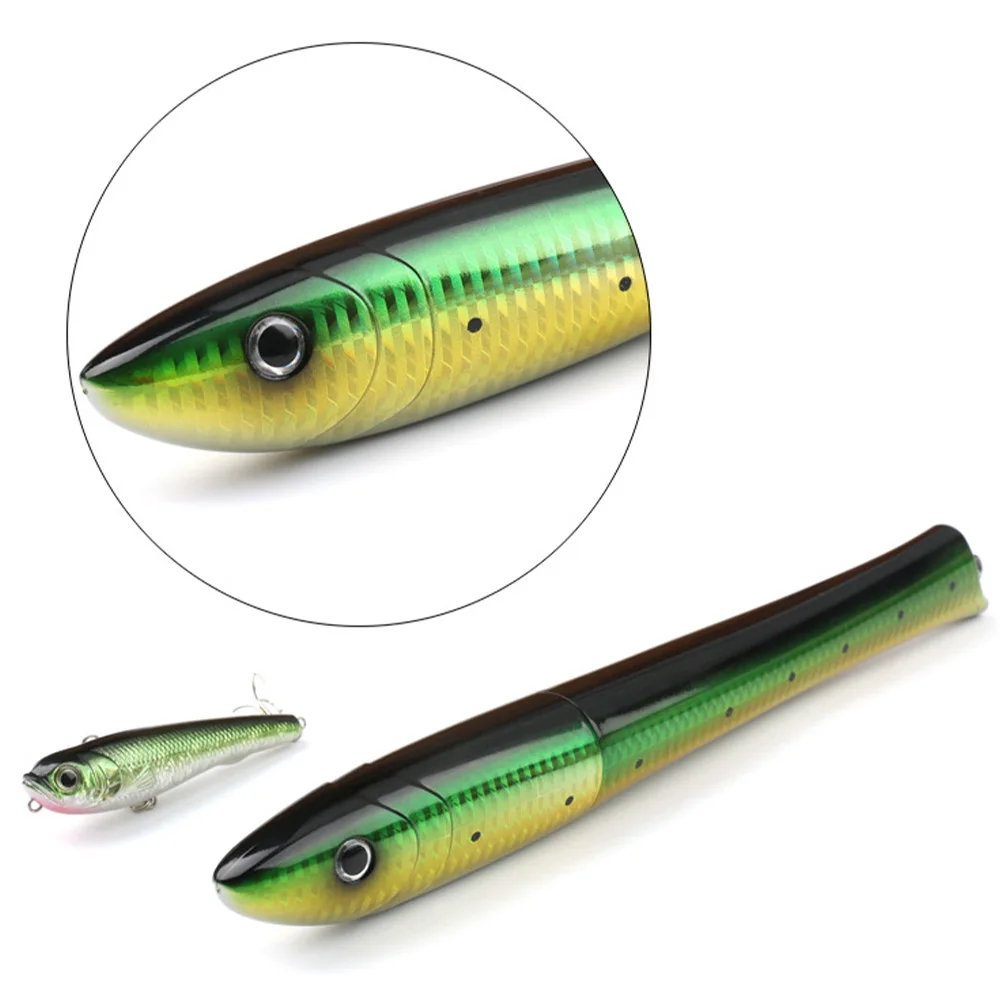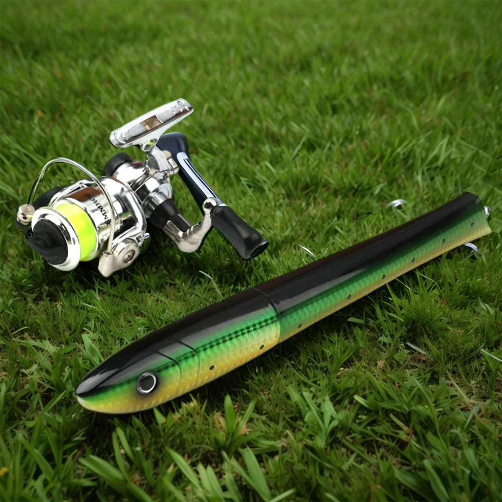 1. Unique Design: The fish-shaped design of this fishing rod makes it stand out from traditional rods, offering a distinctive and stylish look that is sure to catch attention. Specification: Origin: Size: Fishing rod 225mm/8.86inch Material: Fiberglass