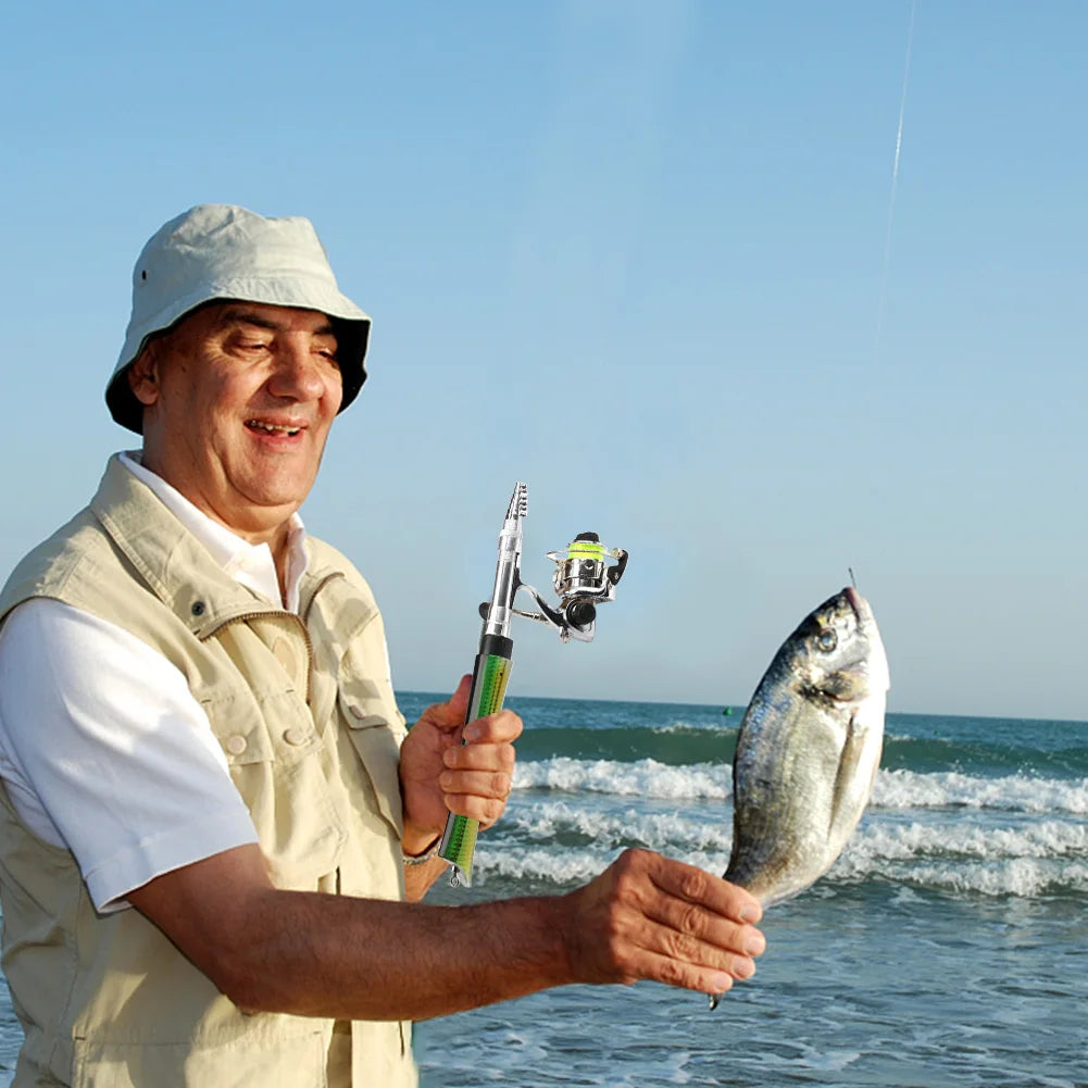 Portable Fish Shaped Fishing Rod Pole Reel Telescopic Mini Pocket Pen Fishing Rod Reel Combo Fishing Rod with Reel Gifts for Men Feature: