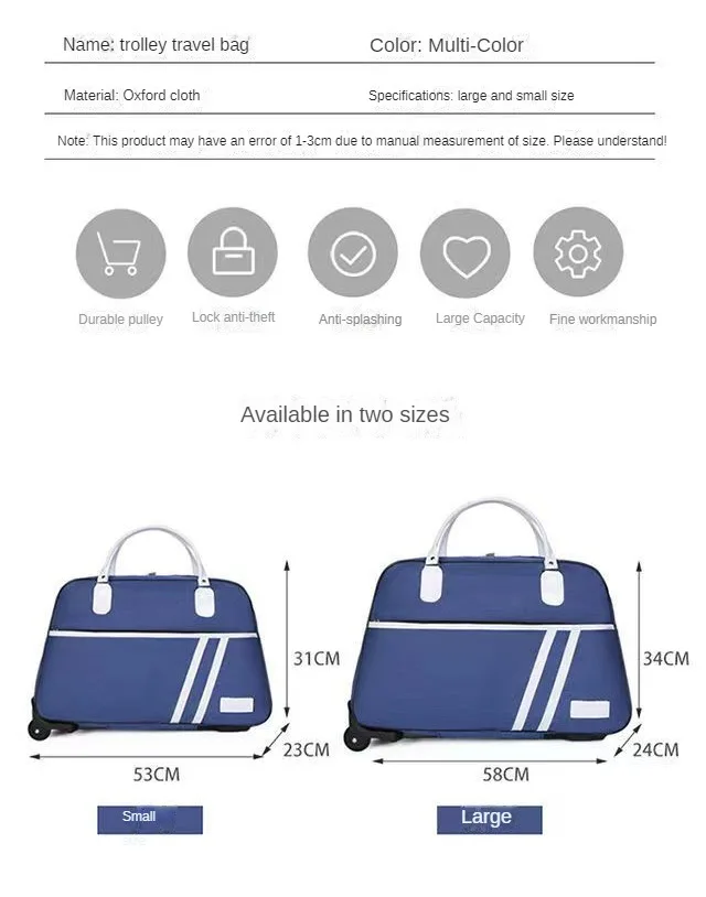 Portable Large Capacity Rolling Trolley Travel Bag Men's Boarding Case Hand Dragged Travel Duffels Zipper Women's Luggage