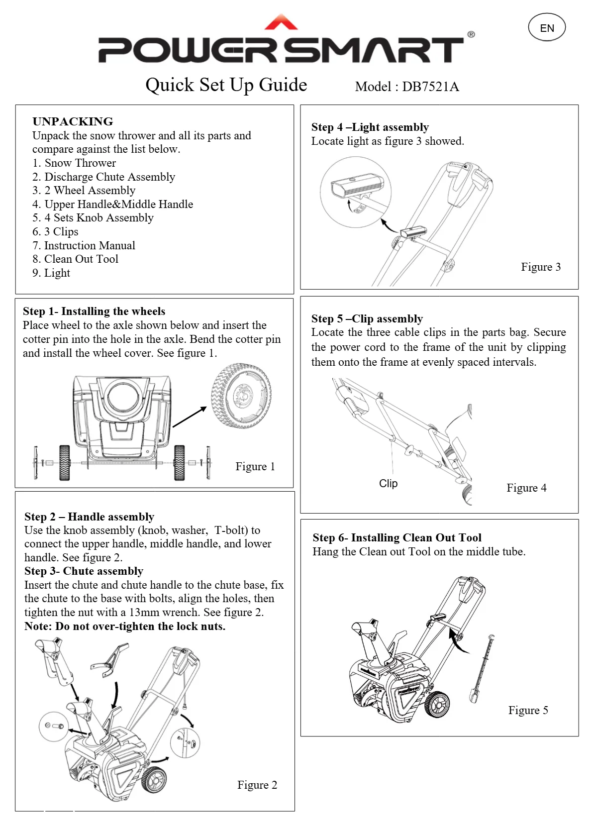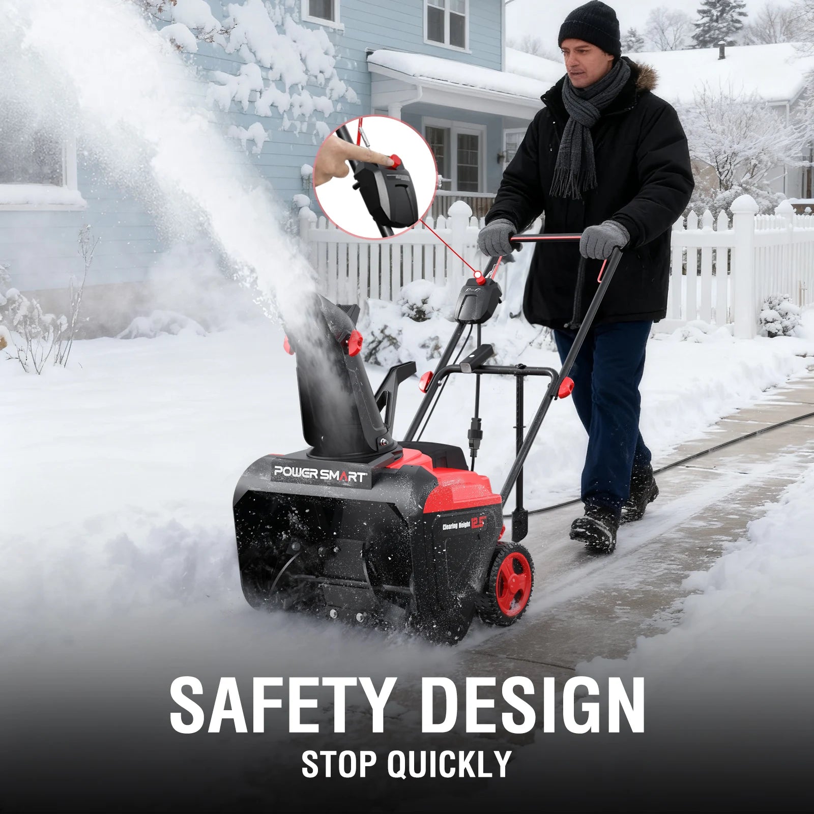 PowerSmart 15A Electric Snow Thrower, 21" Snow Blower with 180° Chute, LED Light, Lightweight for Yard, Driveway & Sidewalk