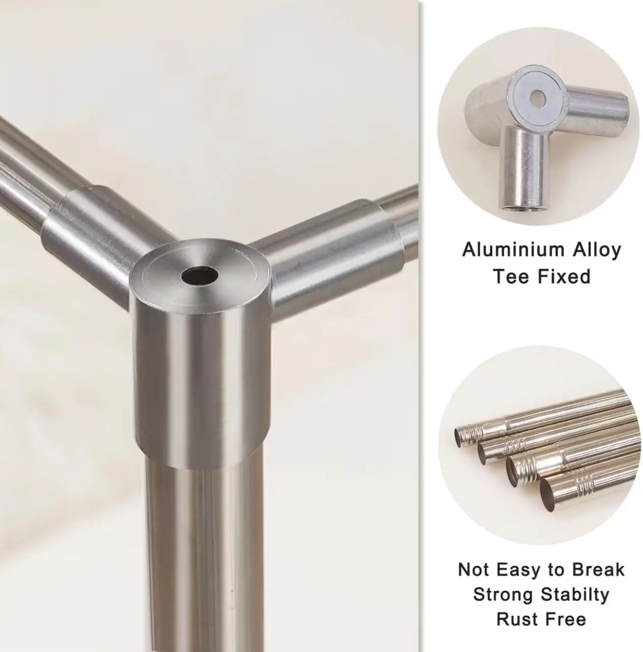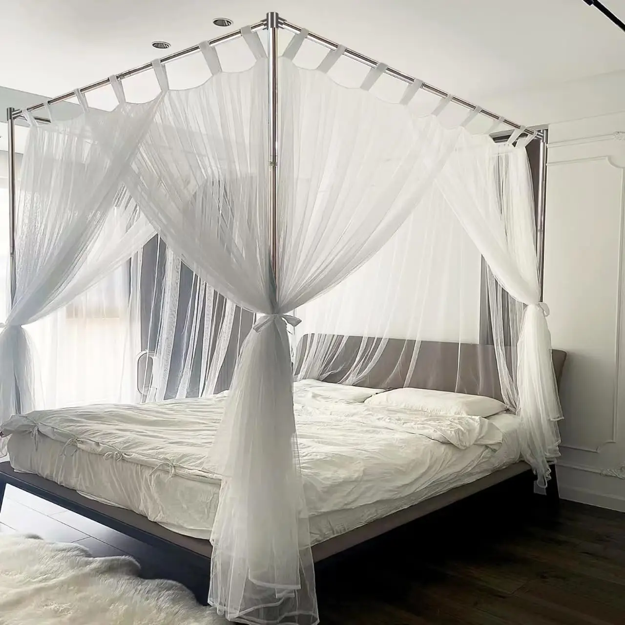 Queen Size Stainless Steel Canopy Bed Frame with Thick Brackets and Mosquito Curtains
