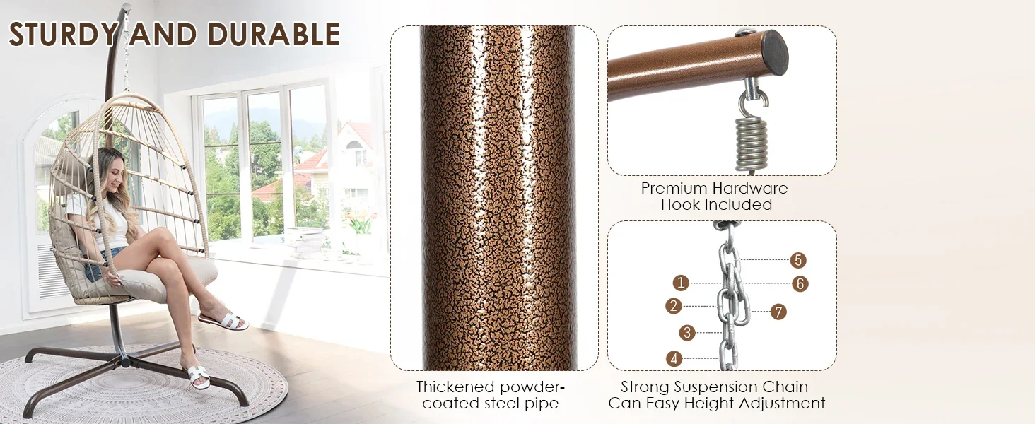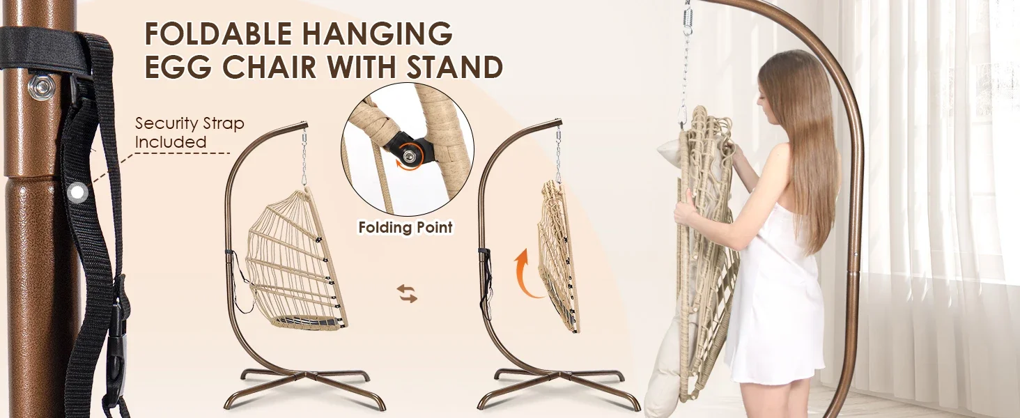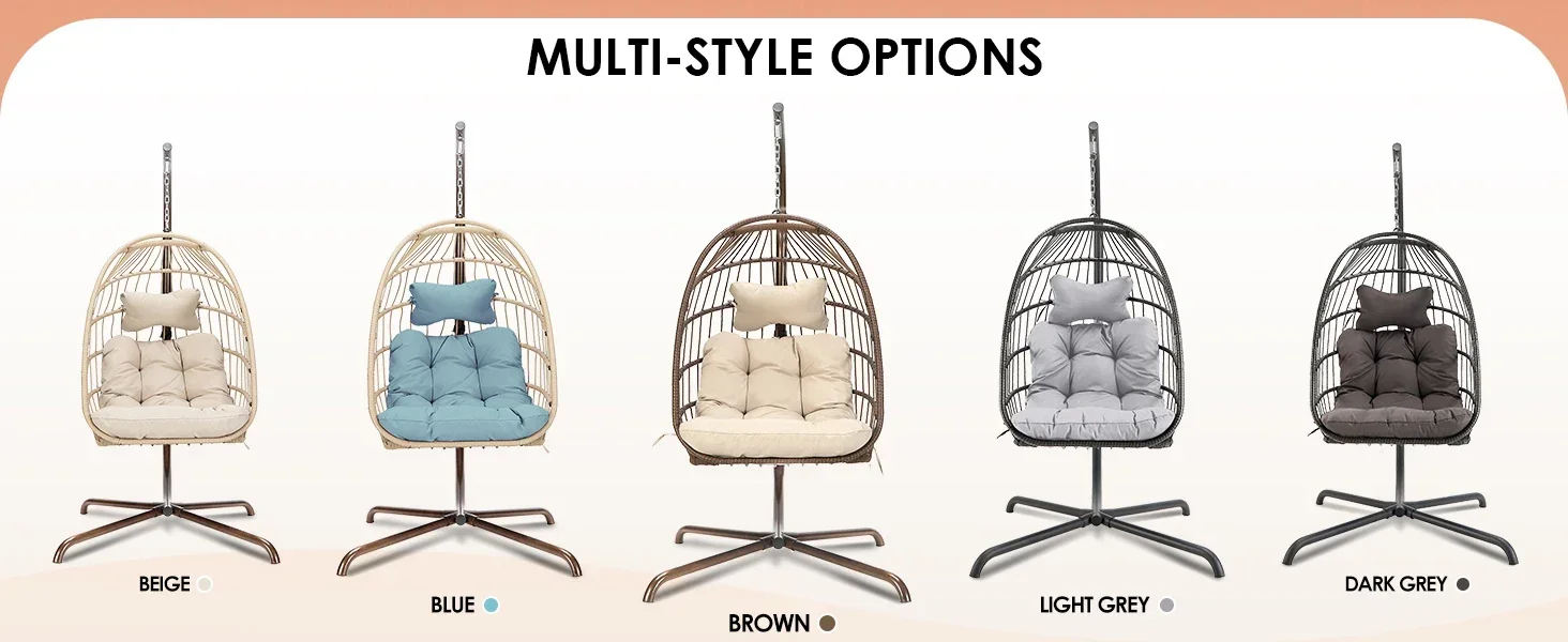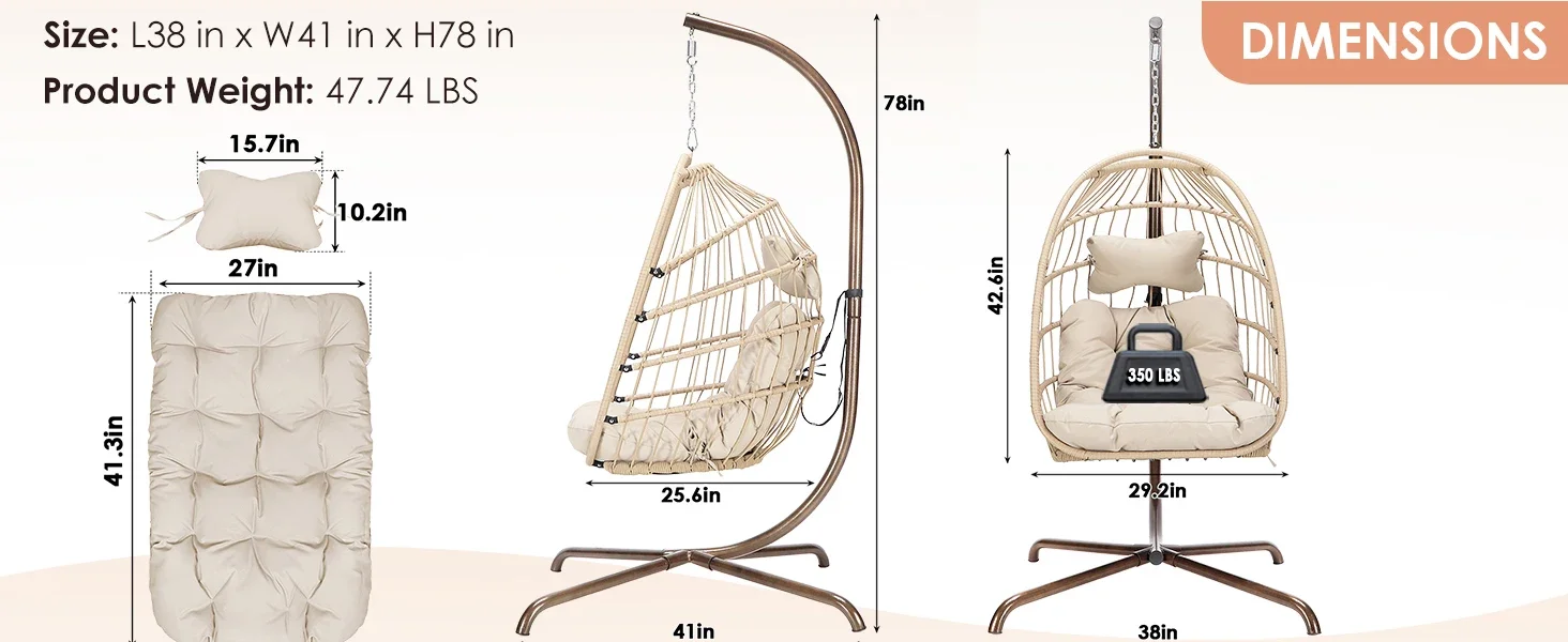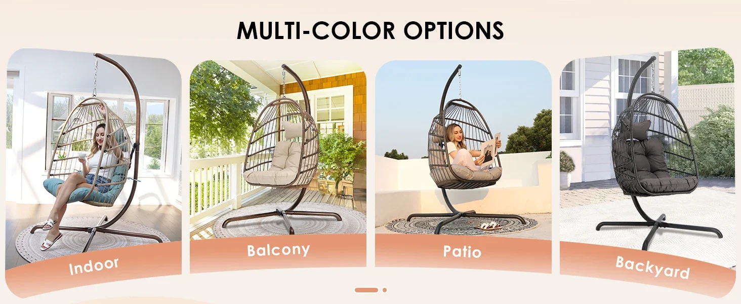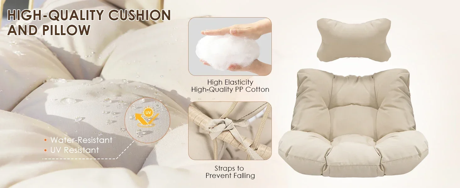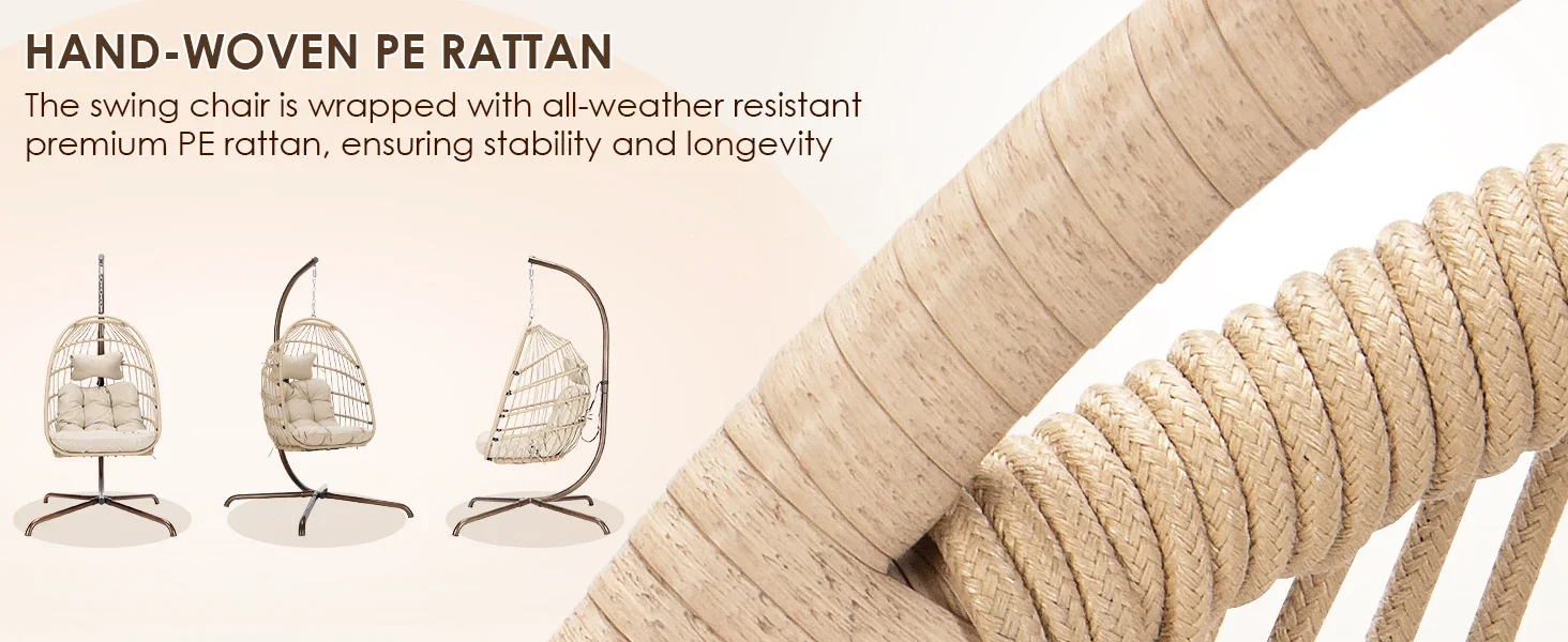 Rattan Wicker Hanging Egg Chair with Stand for Patio Swing Chair with Cushion And Pillow for Indoor Outdoor Use