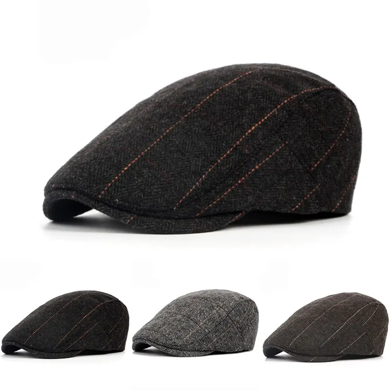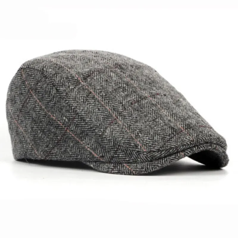 Retro Newsboy Caps Men British Painters Hats Autumn Winter Berets Herringbone Grid with Red Line Flat Cap Hip Hop Berets