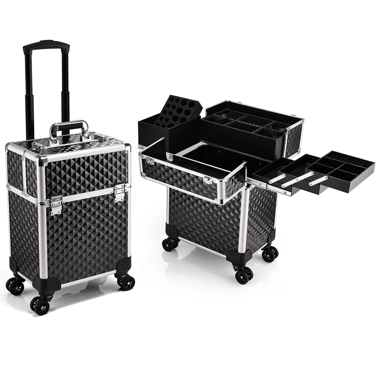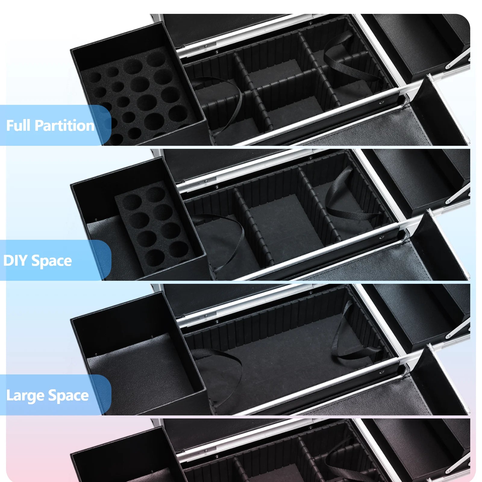 Rolling Makeup Train Case Large Storage Cosmetic Trolley 4 Tray with Sliding Rail Removable with Key Wheels Traveling Cart Trunk