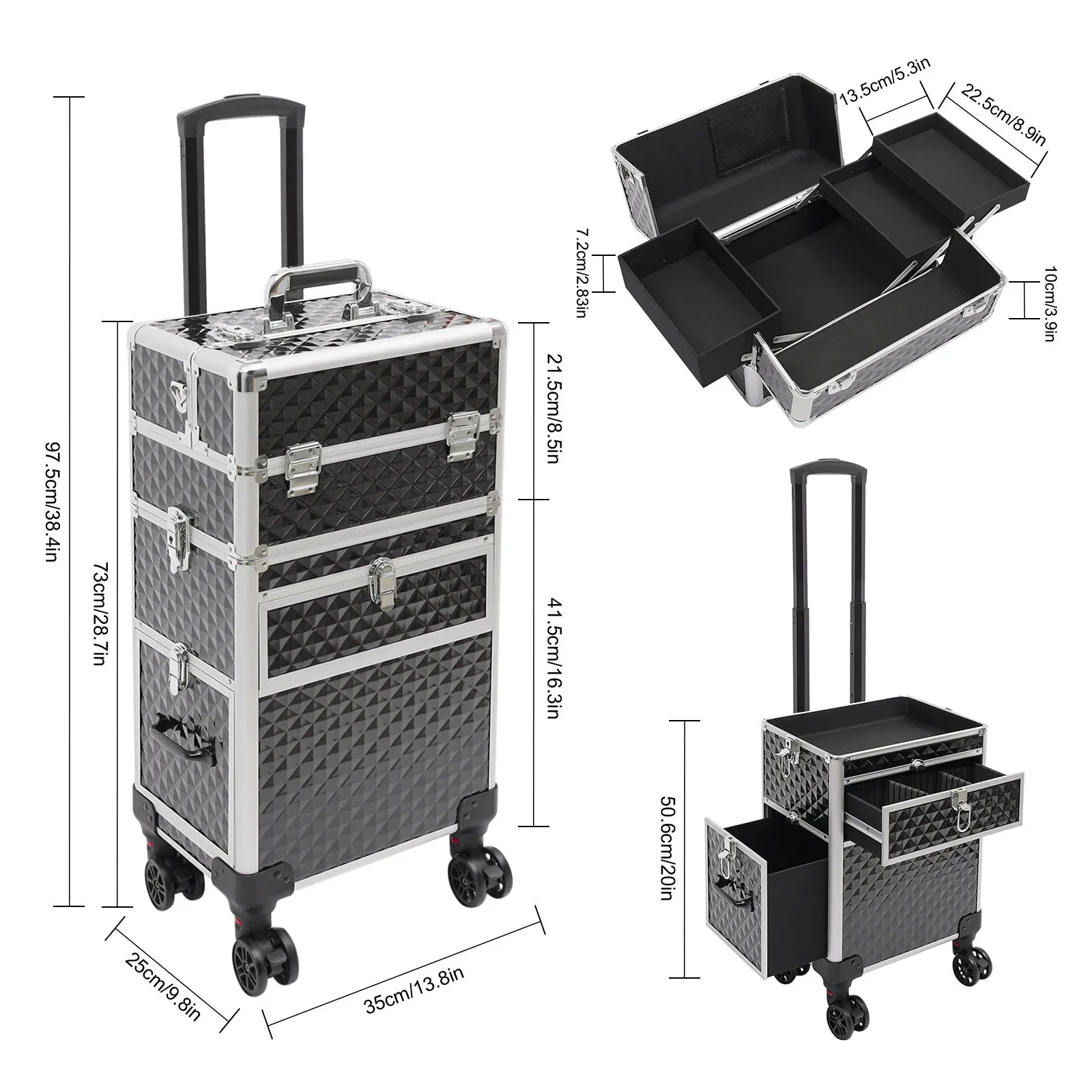 Rolling Makeup Train Case – Multi-functional Storage Solution for Makeup Artists and Hairstylists