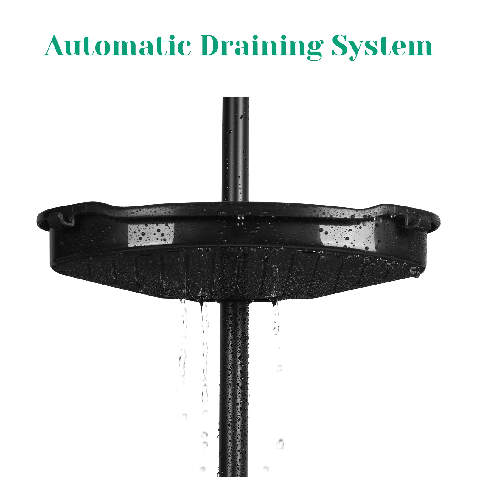Rustproof Shower Caddy Corner: This bathtub storage rrganizer is constructed by 5 rods which can effectively prevent from rusting. Plus 4 solid plastic never-rust shelves. It can be installed in bathroom, shower room, college dorm, toilet for more than 3 years.