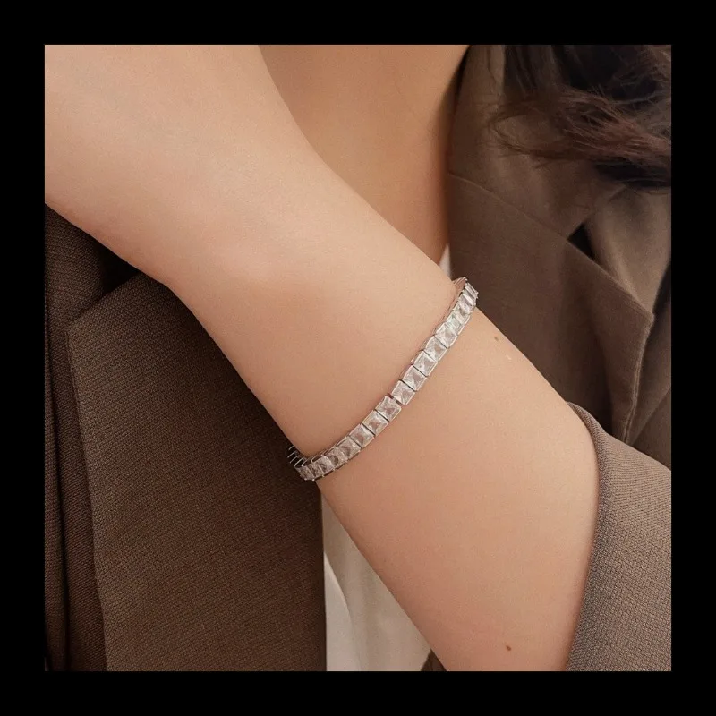 S925 Sterling Silver Single Row Zircon Hip Hop Internet Celebrity Full Zircon Bracelet Bracelet Jewelry
