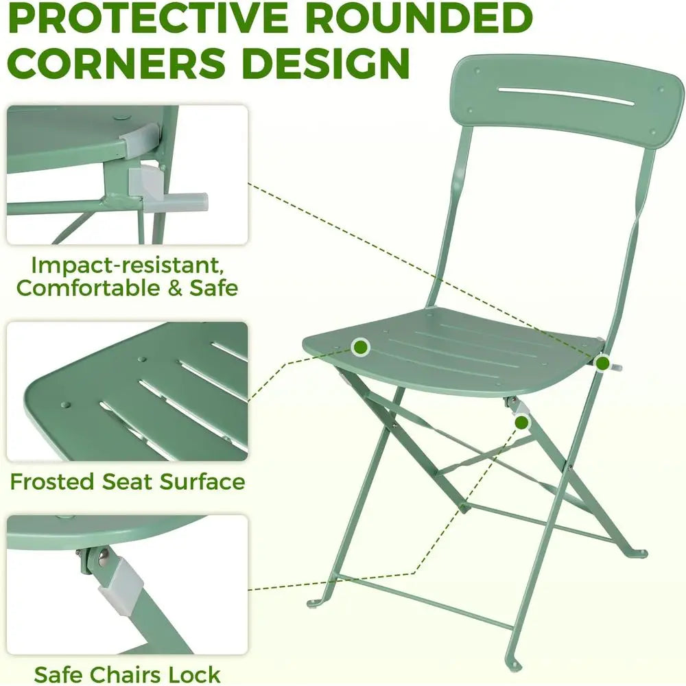 Sage Green 3-Piece Folding Patio Bistro Set with Premium Frame, Colorful Outdoor Furniture
