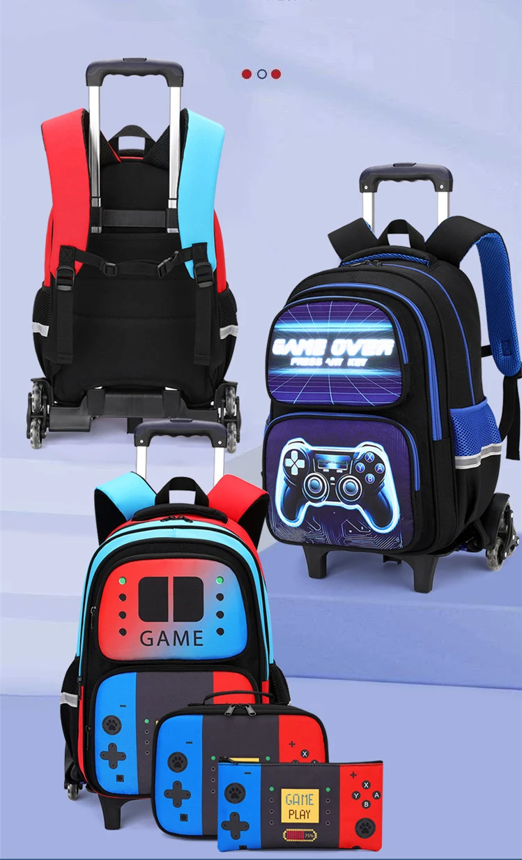 School Bag Kids Rolling Backpack for Boy Wheeled Backpack School Bag With Wheels Trolley Bookbag Carry on Luggage with Lunch Bag