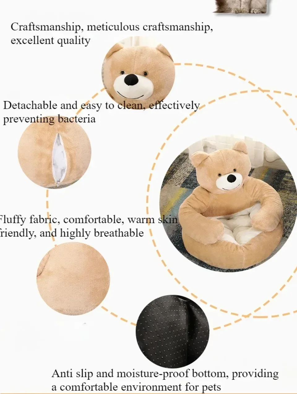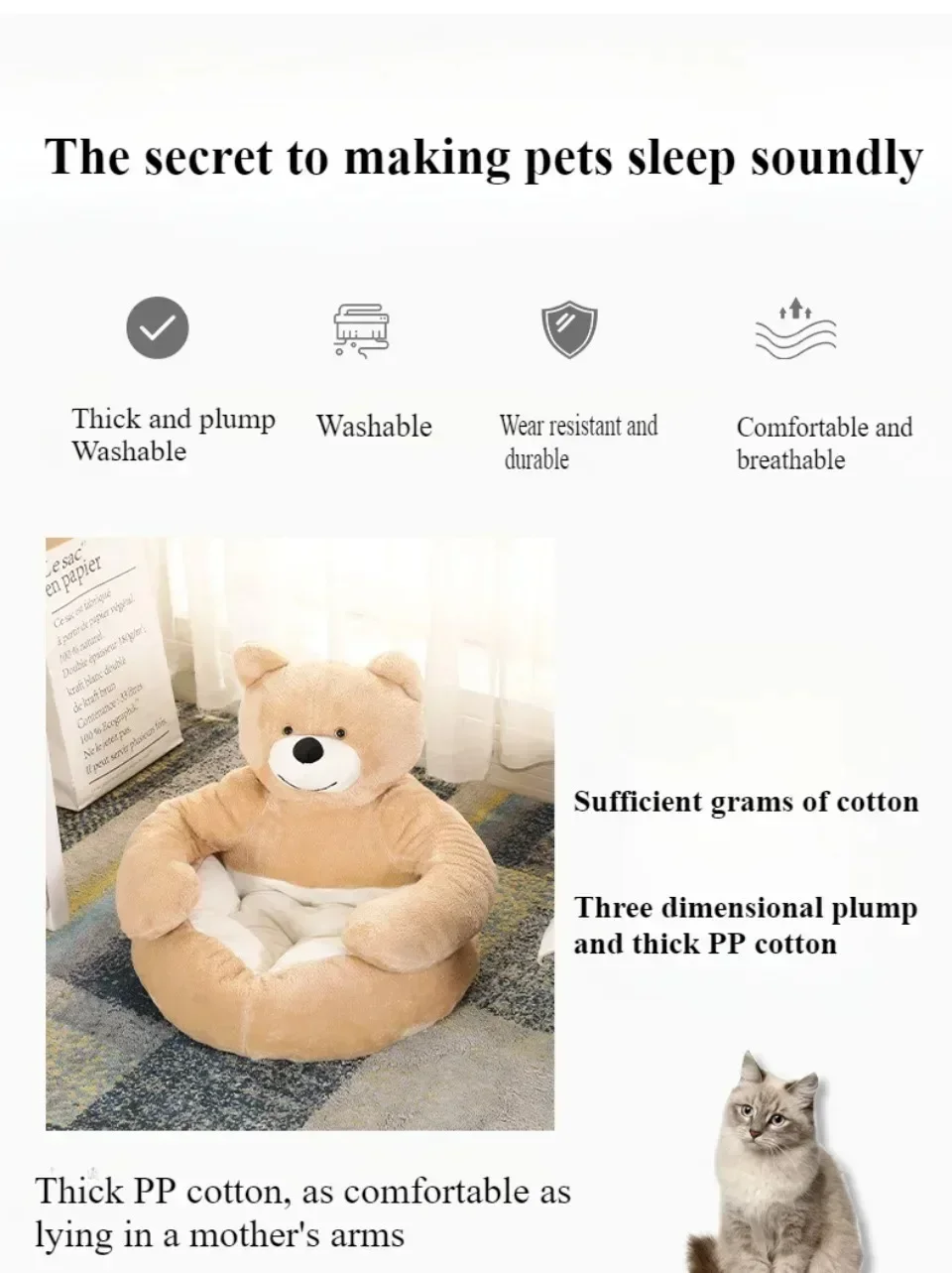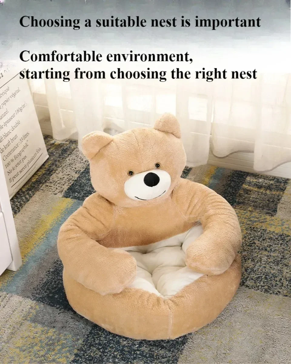 Semi Enclosed Bear Pet Dog Bed Comfortable and Warm Teddy Bear Style Winter Pet Bed Super Soft and Simple Teddy Bear Plush Bed