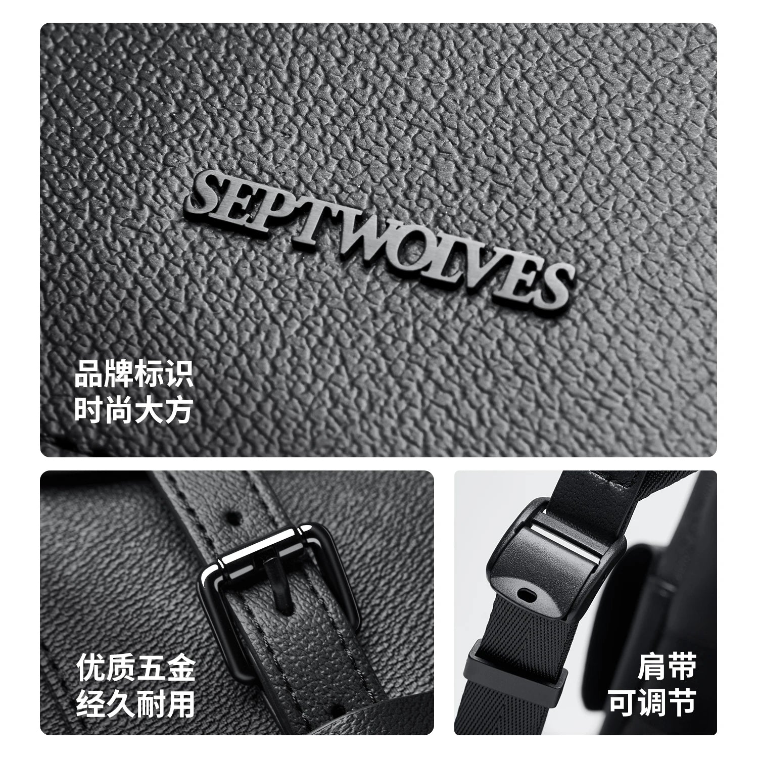 Septwolves Luxury Brand Classic Patterns Business Leather Backpack Man Drawstring Flip Designer 15.6 Inch Laptop Bags Rucksack
