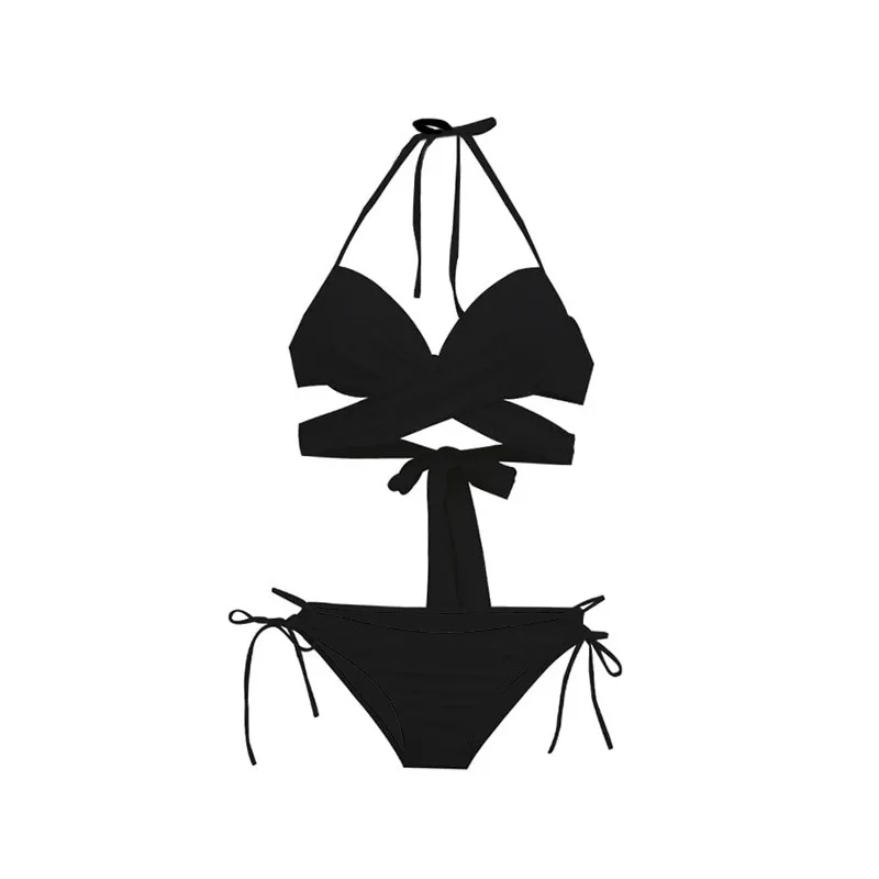 sexy Korean fashion bandage halter cross bikinis sets two pieces solid black and white swimsuit bikinis padded swimwear