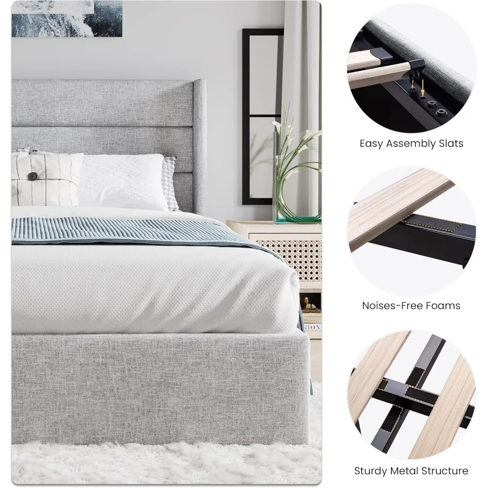 Special Feature Lift Up Storage Squeak Resistant Wingback Headboard