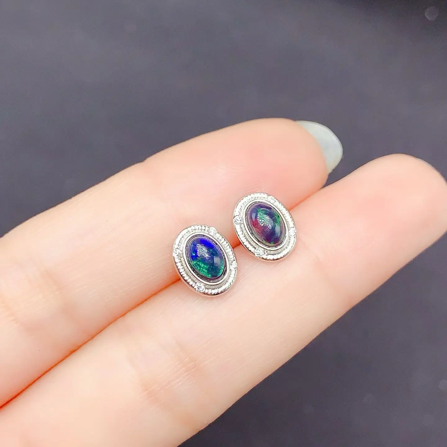 Simple Design 925 Silver Jewelry Set Natural Opal Ring Earrings and Pendant Total 1.2ct Dyed Opal Jewelry