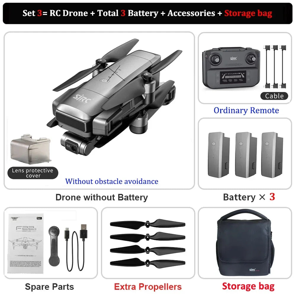SJRC F22 S3 PRO Drone 4K Professional Camera GPS HD 5G WiFi FPV 3-Axis Gimbal EIS Brushless Foldable RC Quadcopter Toys For Kids