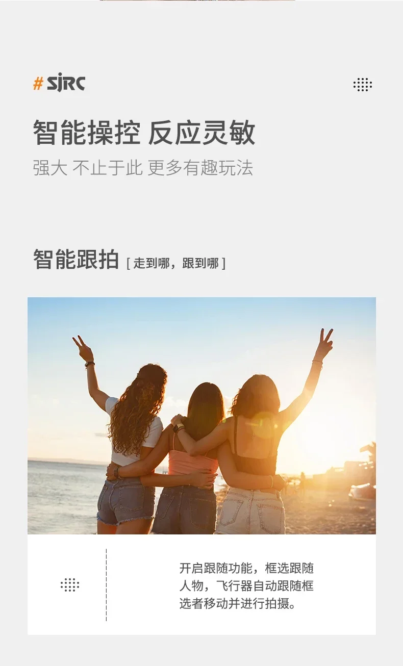 7: Intelligent follow, surround flight, palm control, map real-time positioning, UAV, out of control map, route planning, APP mobile phone control, one button return, up and down, forward and backward, left and right side flight, automatic switching optical flow / GPS