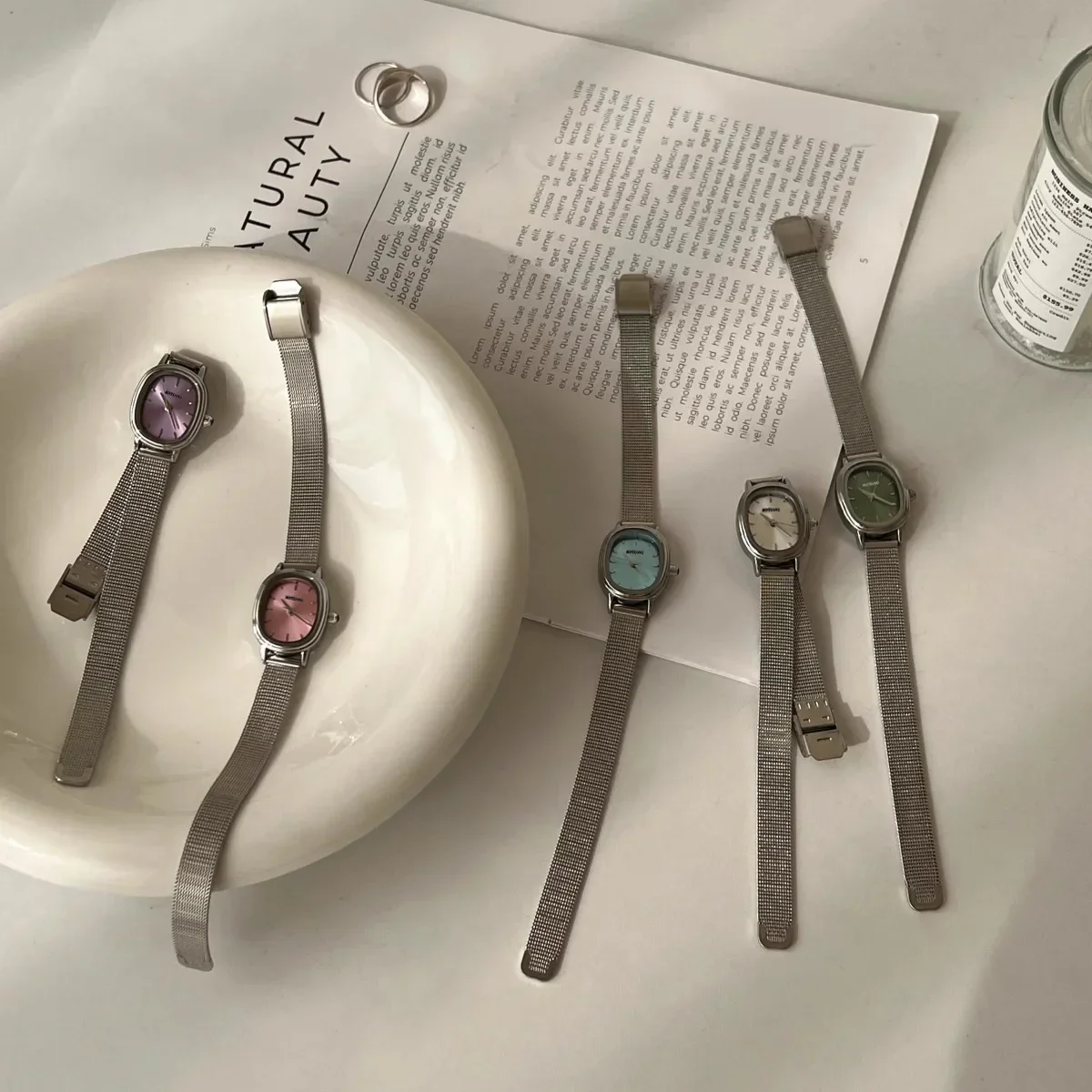 Small Oval Dial Green Watch Simple Stainless Steel Ladies Wristwatches Brand Women Luxury Gift Quartz Watch Dropshipping