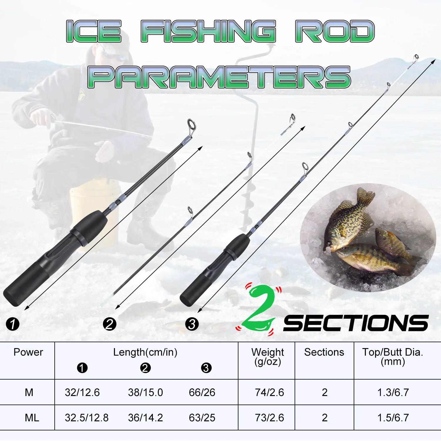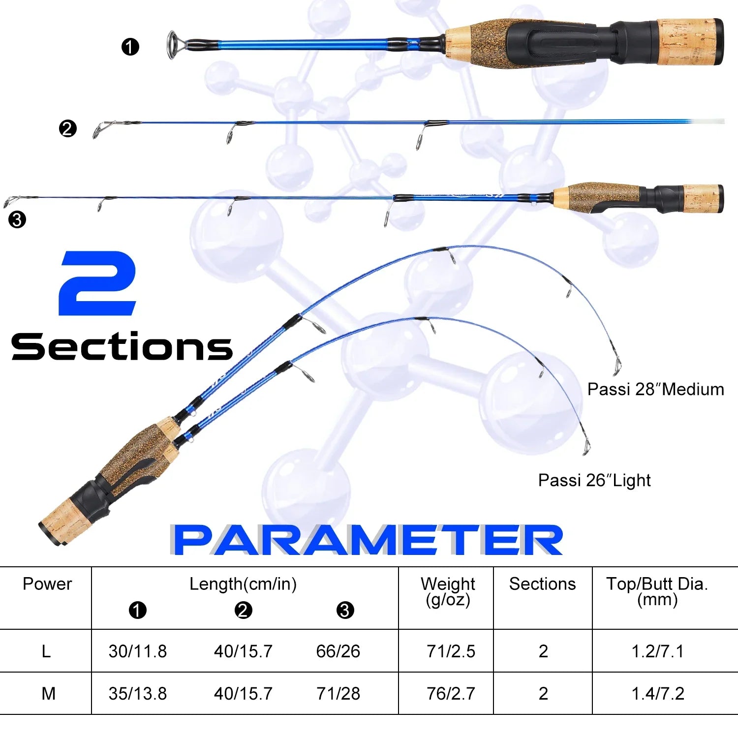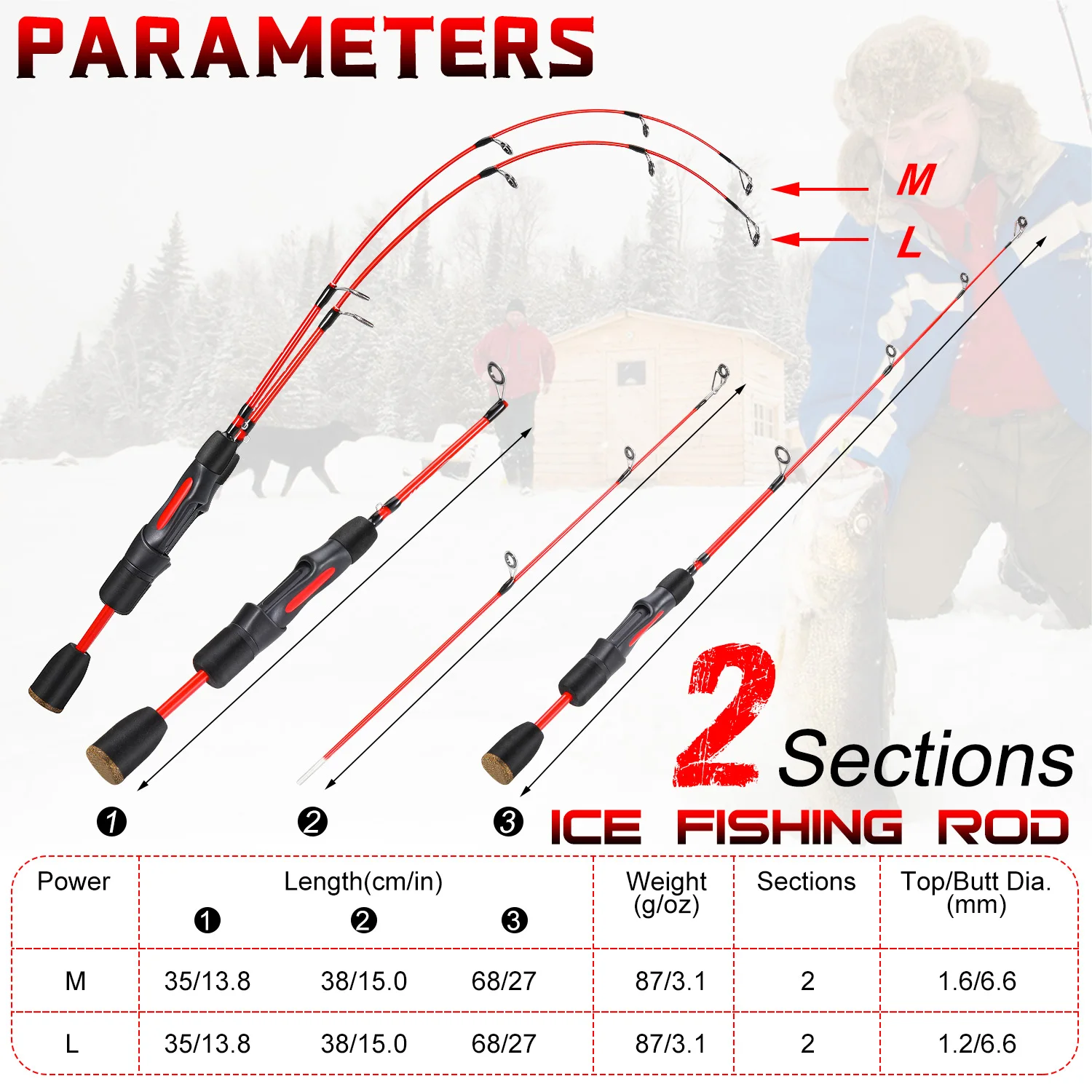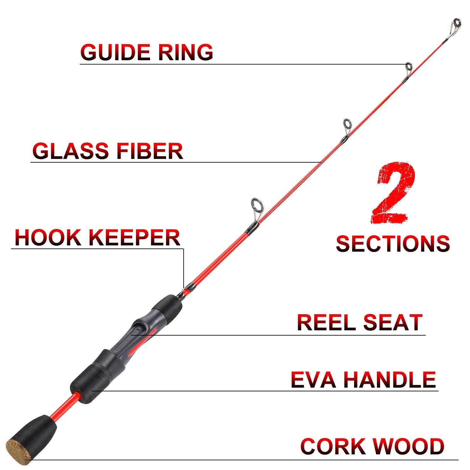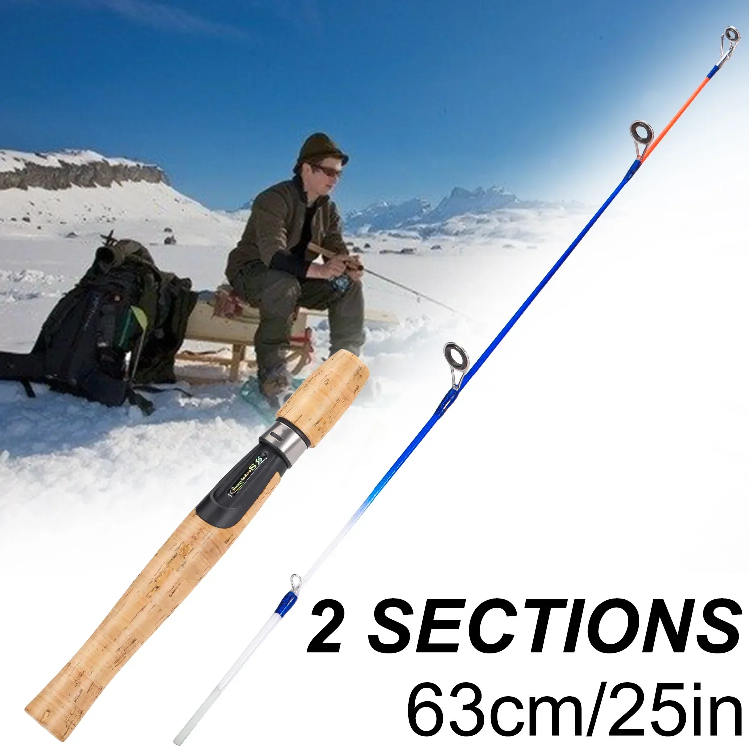 Sougayilang 63cm 71cm Winter Ice Fishing Rods 2 Sections Ultralight Portable Winter Fishing Rod Wooden Handle Spinning Rods