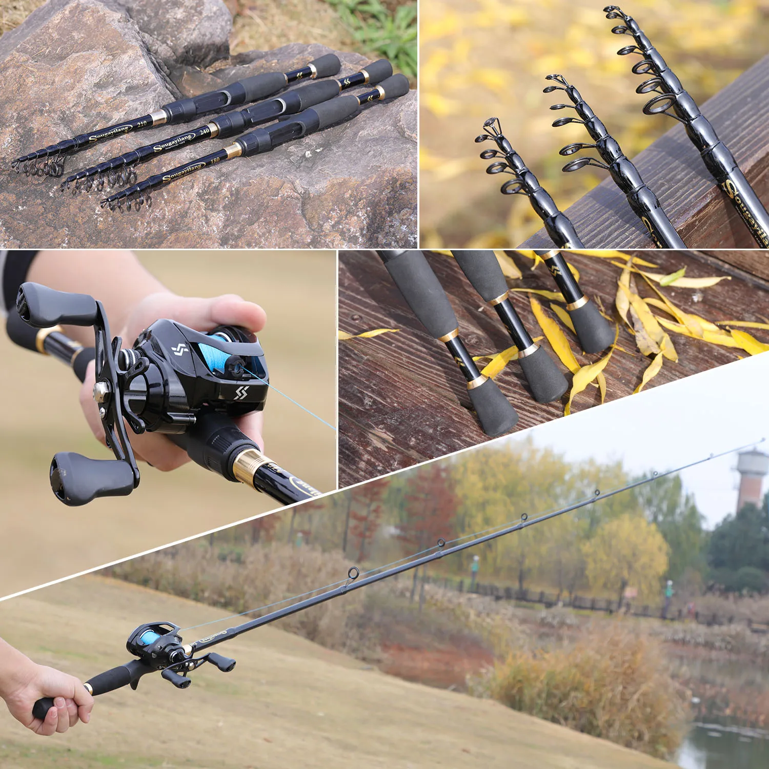 Sougayilang Telescopic Fishing Rod 1.8-2.4m Ultralight Weight Carbon Fiber Portable Spinning Casting Rod Fishing Tackle Fishing