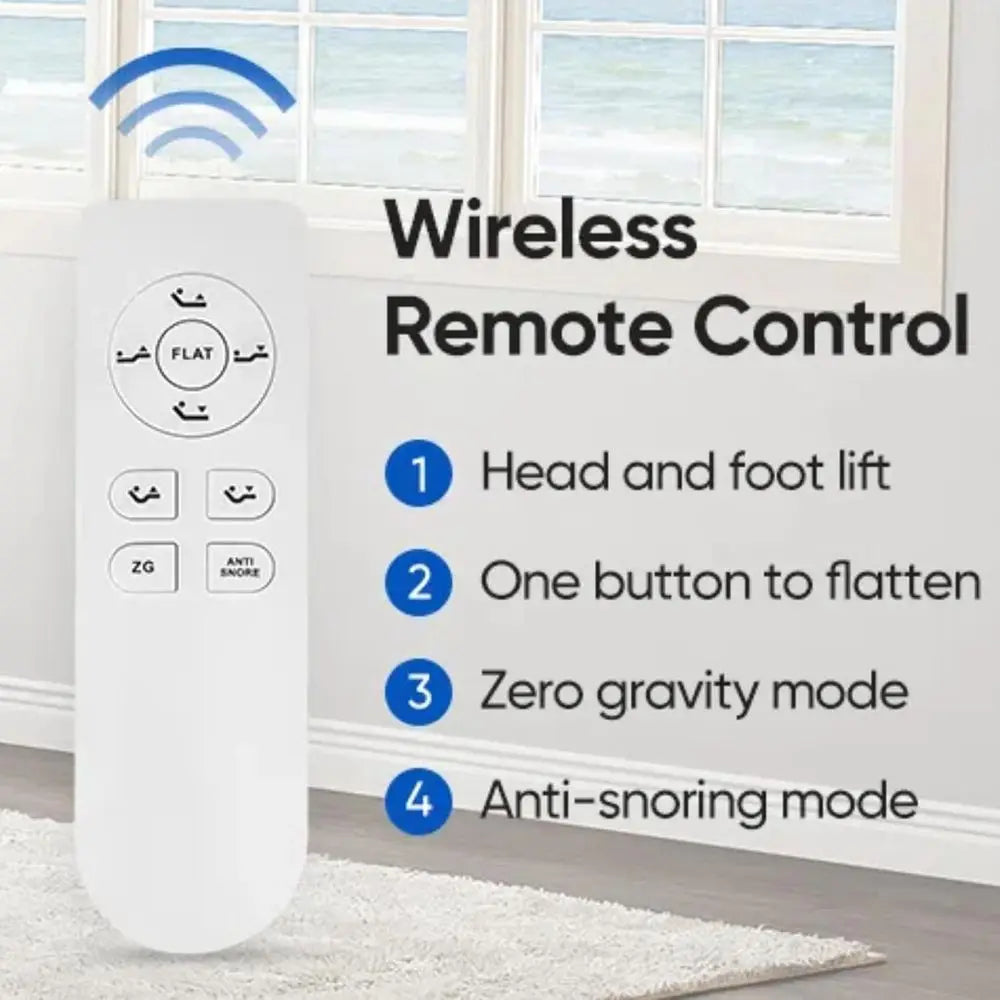 Split King Electric Adjustable Bed Frame with Wireless Remote, 3 Retainer Bars, Anti-Snore, Zero Gravity Features
