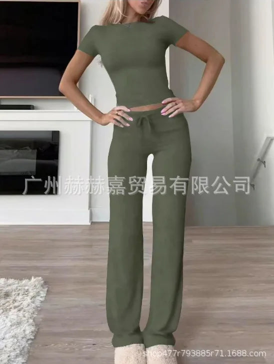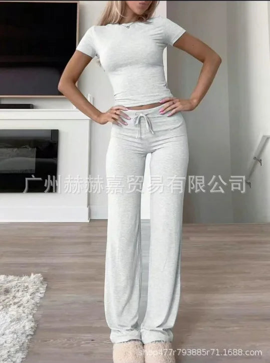 Spring Women's Two-piece Set 2025 New Casual Suit Short Sleeved Slim Fit Top Long Pants Home Wear Sportswear Yoga Wear For Women