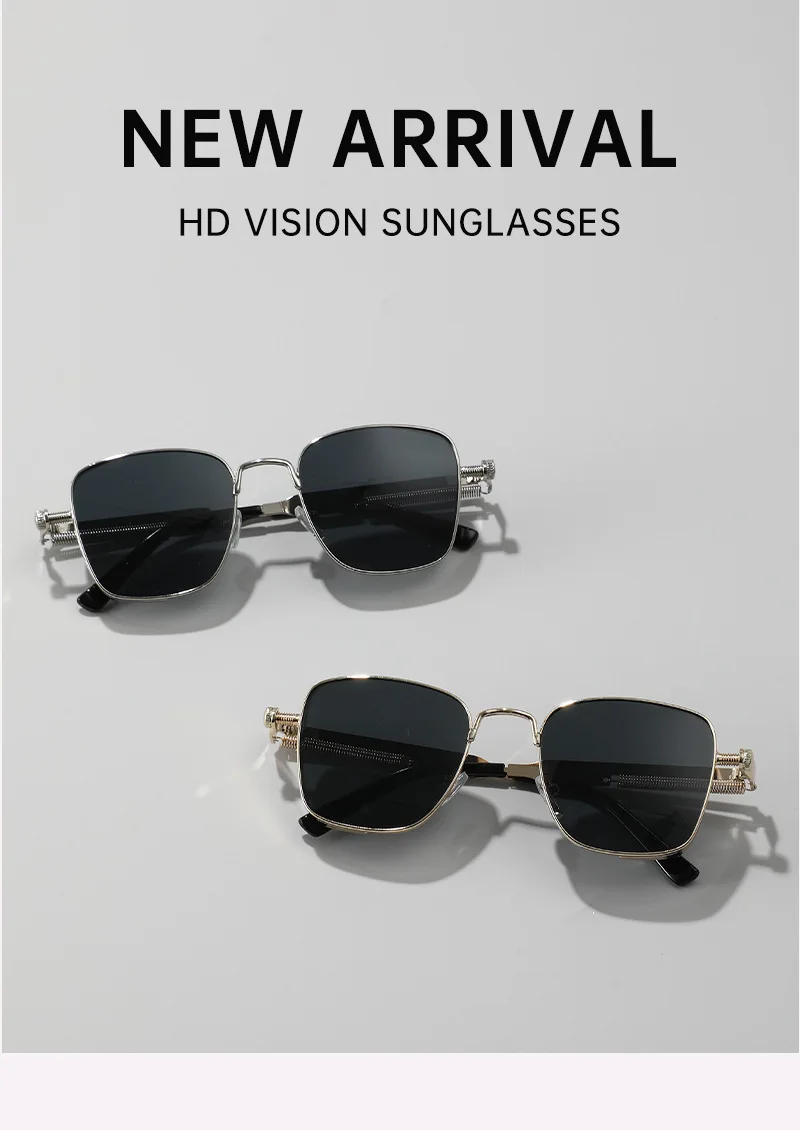 Square sunglasses for men with a sense of luxury and cool driving style, UV resistant heavy-duty metal punk sunglasses