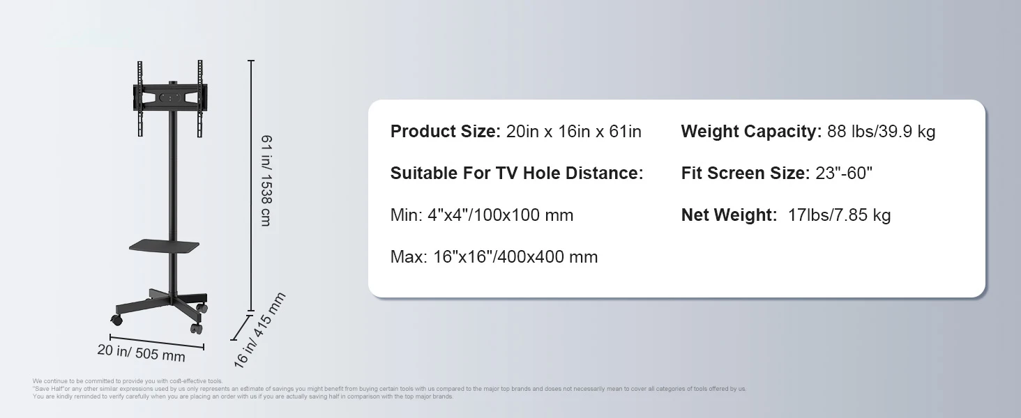 Enhanced Safety & Stability: Our portable TV stand with double-pole support design, ensures superior load-bearing capacity up to 132/ 88 lbs and stability. It is designed with your safety in mind, so say goodbye to worries about wobbling or tipping.