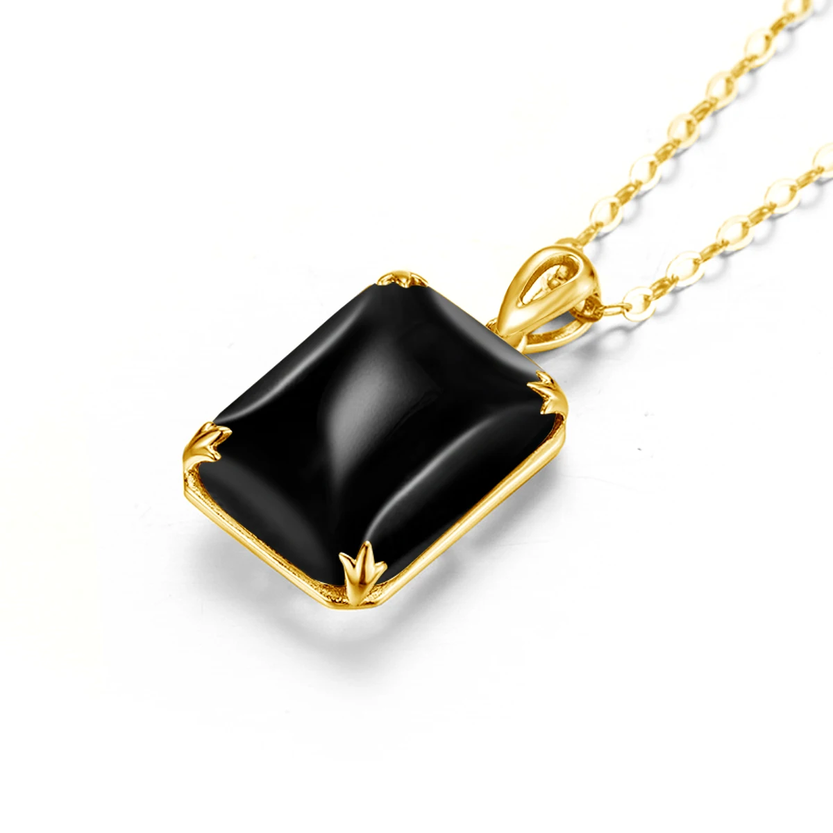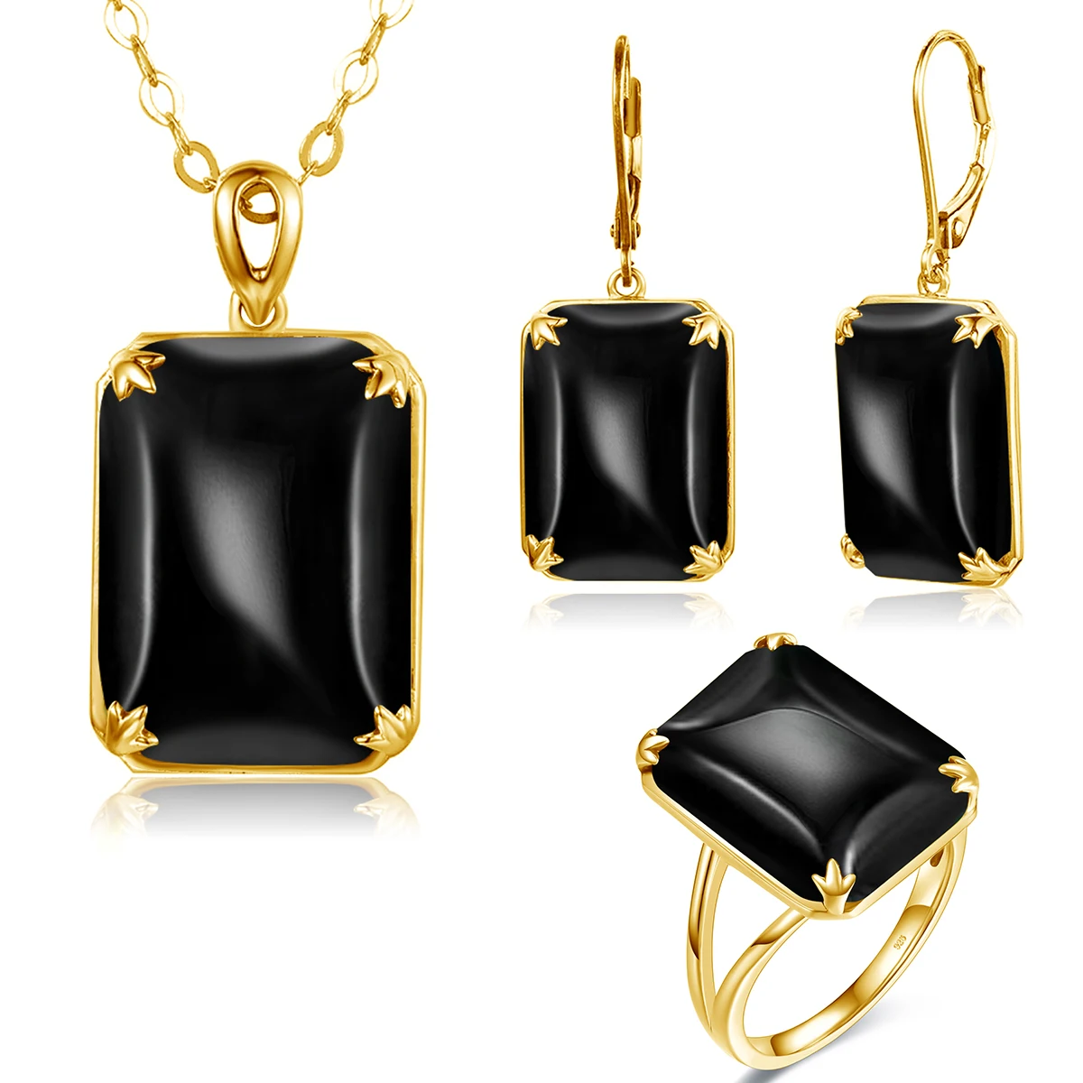 Szjinao Gold Jewelry Set For Women Real 925 Sterling Silver Black Onyx Pendant Earrings Ring Set Vitage Fine Jewelry Handmade
