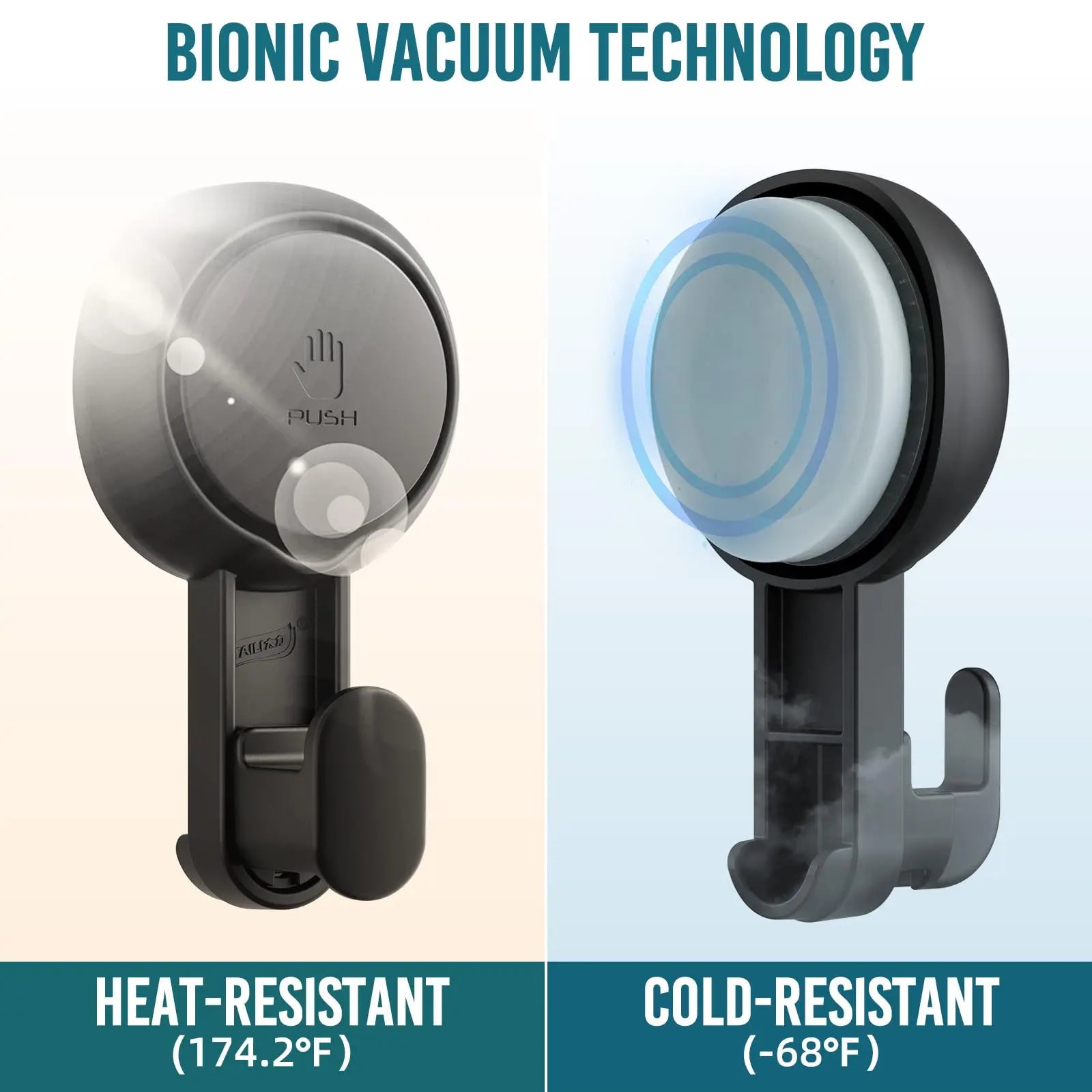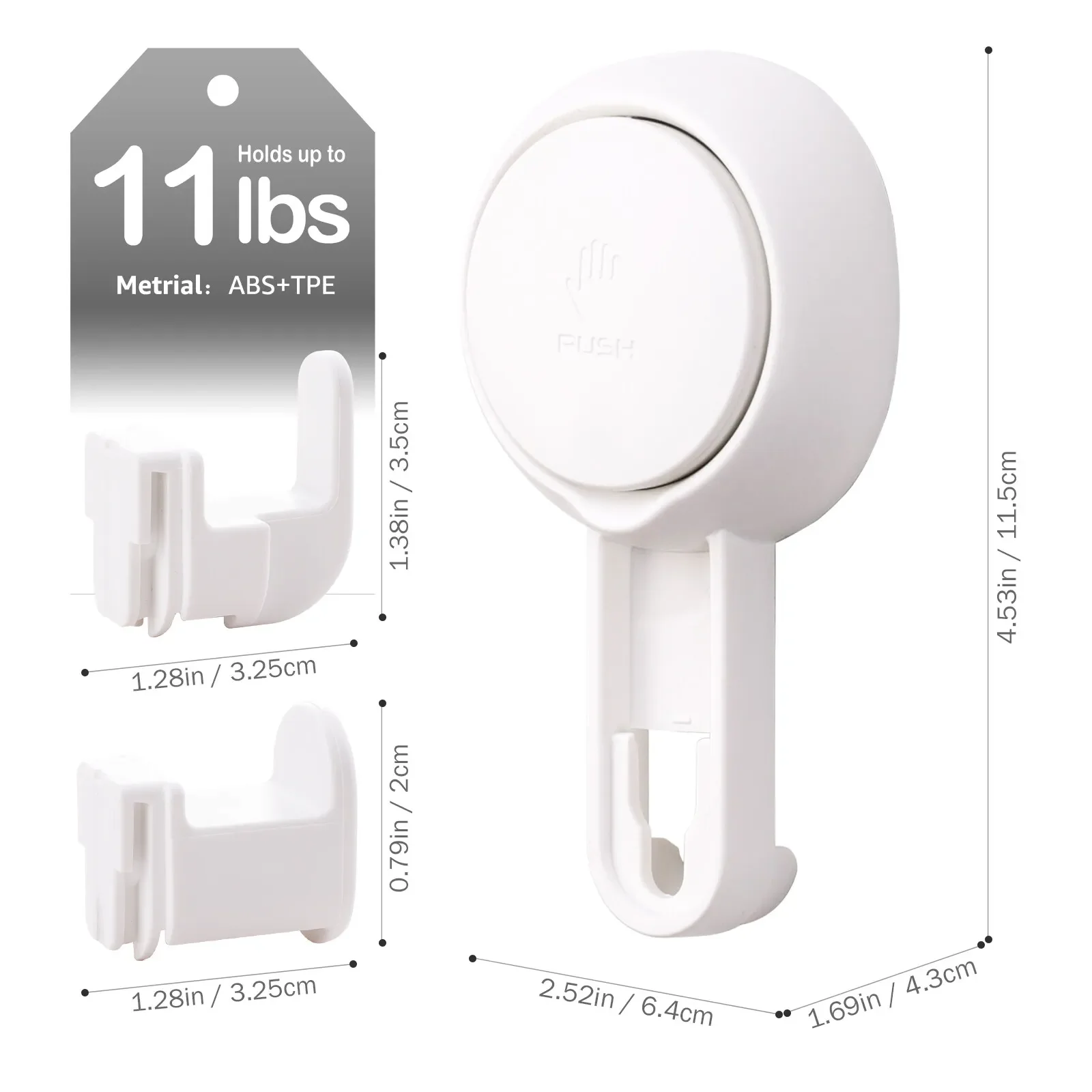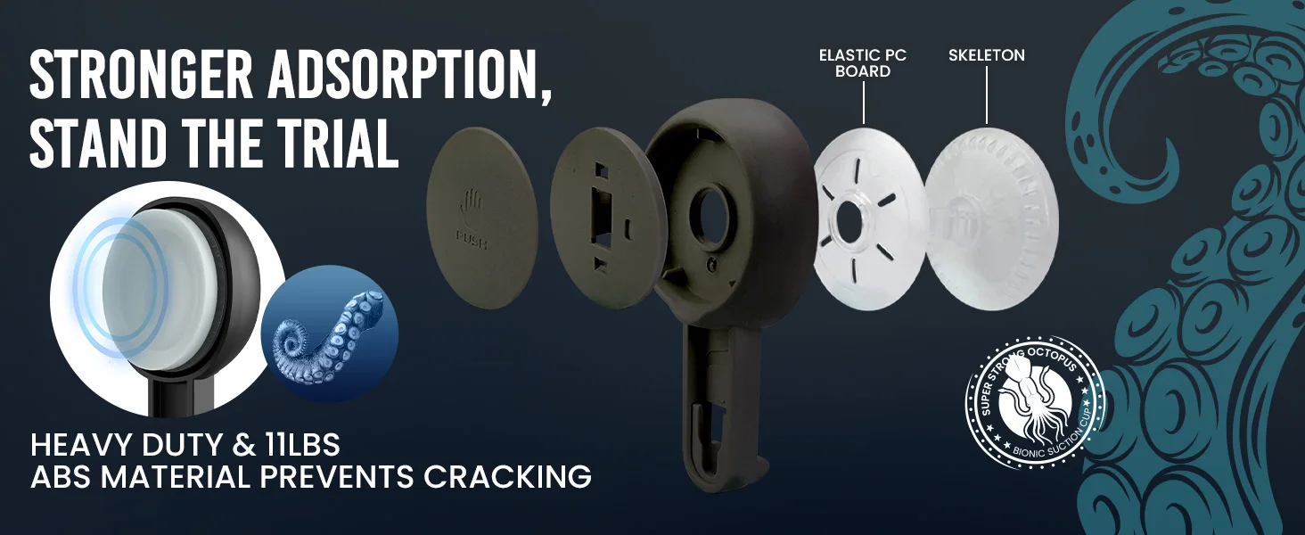 Powerful suction cup: Inspired by the tentacles of octopus, the shower holder suction cup applied the new bionic technology to ensure waterproof, oil-proof and anti-aging. The towel hook with thicken plastic suction can hold up to 11 lbs and stick sturdily for years, available to remove and reinstall it in a new surfaces
