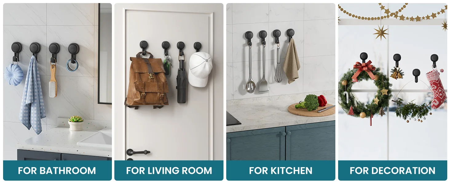 Wide applications: These creative wall hooks provide the best organization solution for your bathroom, kitchen, basement, window, mirror and more place for hanging shower towels, sponges, bath brush, coats, bags, hats, keys, kitchenware, bath accessories etc. Hang whatever and wherever you want