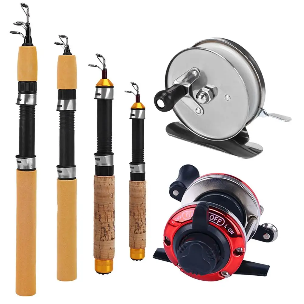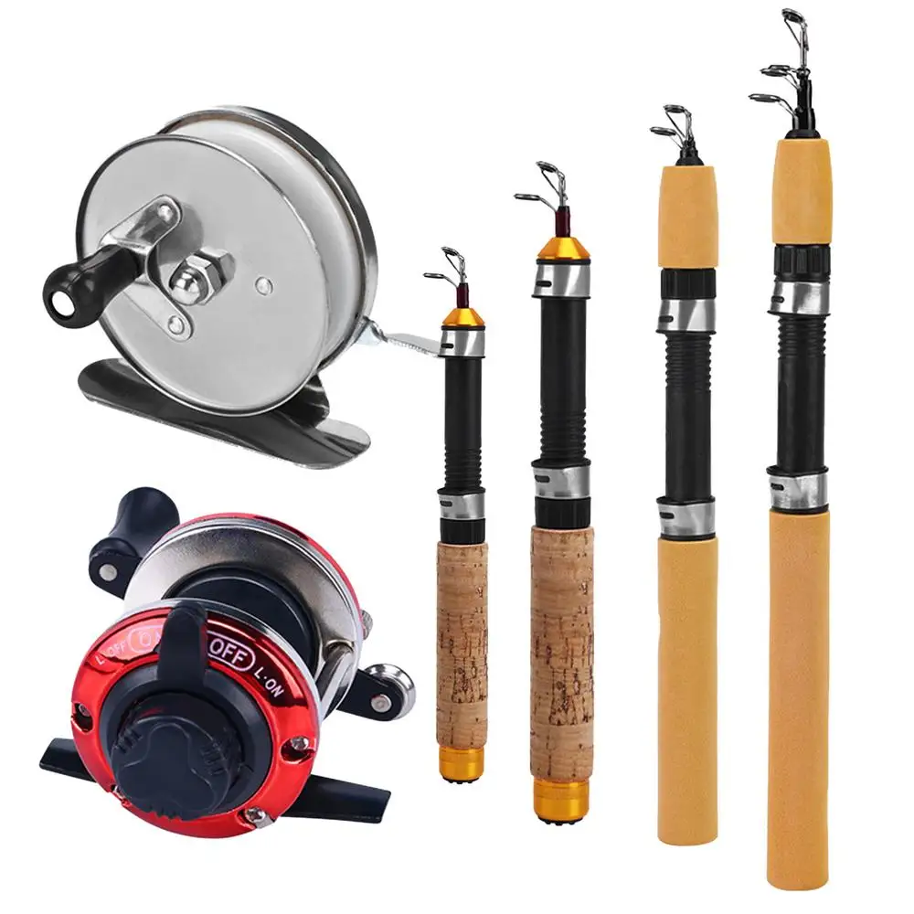Telescopic Ice Fishing Rod With Reel Mini Fishing Rod 60 80 100CM Carbon River Shrimp Carp Fishing Pole For Winter Fishing Gears