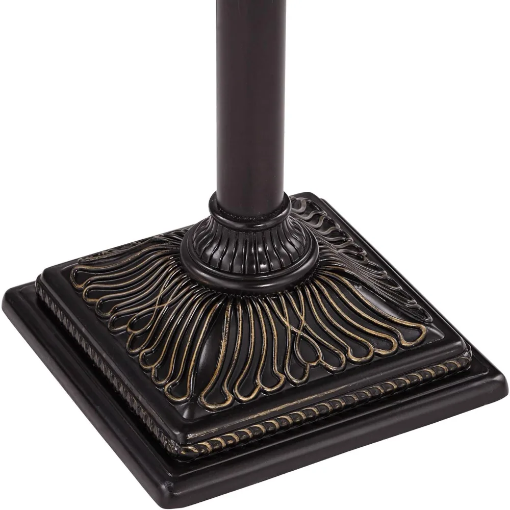 This floor lamp offers a versatile lighting solution with its elegant design and adjustable features. Standing at 72 1/2 inches tall with a 12-inch base, the side light arm can extend up to 15 inches from the pole. The top shade measures 16 inches wide by 6 1/2 inches high, while the side shade is 5 inches wide by 5 inches long. Weighing 28 pounds, it accommodates a 14-watt dimmable LED bulb for the top light and requires a 40-watt maximum bulb for the side light (not included). The lamp's gooseneck design allows for adjustable angles, making it an ideal reading light for bedside use. Its brown finish adds a warm and inviting touch to any space, blending functionality with decorative appeal. Perfect for both bedroom and office settings, this traditional floor lamp provides flexible angles for optimal lighting. It features an on-off rotary switch at the neck for the top light and a separate switch on the side light. With amber glass shades and an adjustable gooseneck arm, this lamp from the Regency Hill brand offers a traditional torchiere design with a modern touch. Constructed with metal and resin, it boasts an oil-rubbed bronze finish and comes with an 8-foot long cord. This lamp is not only a stylish addition to any living room corner but also ensures balanced lighting for your home.